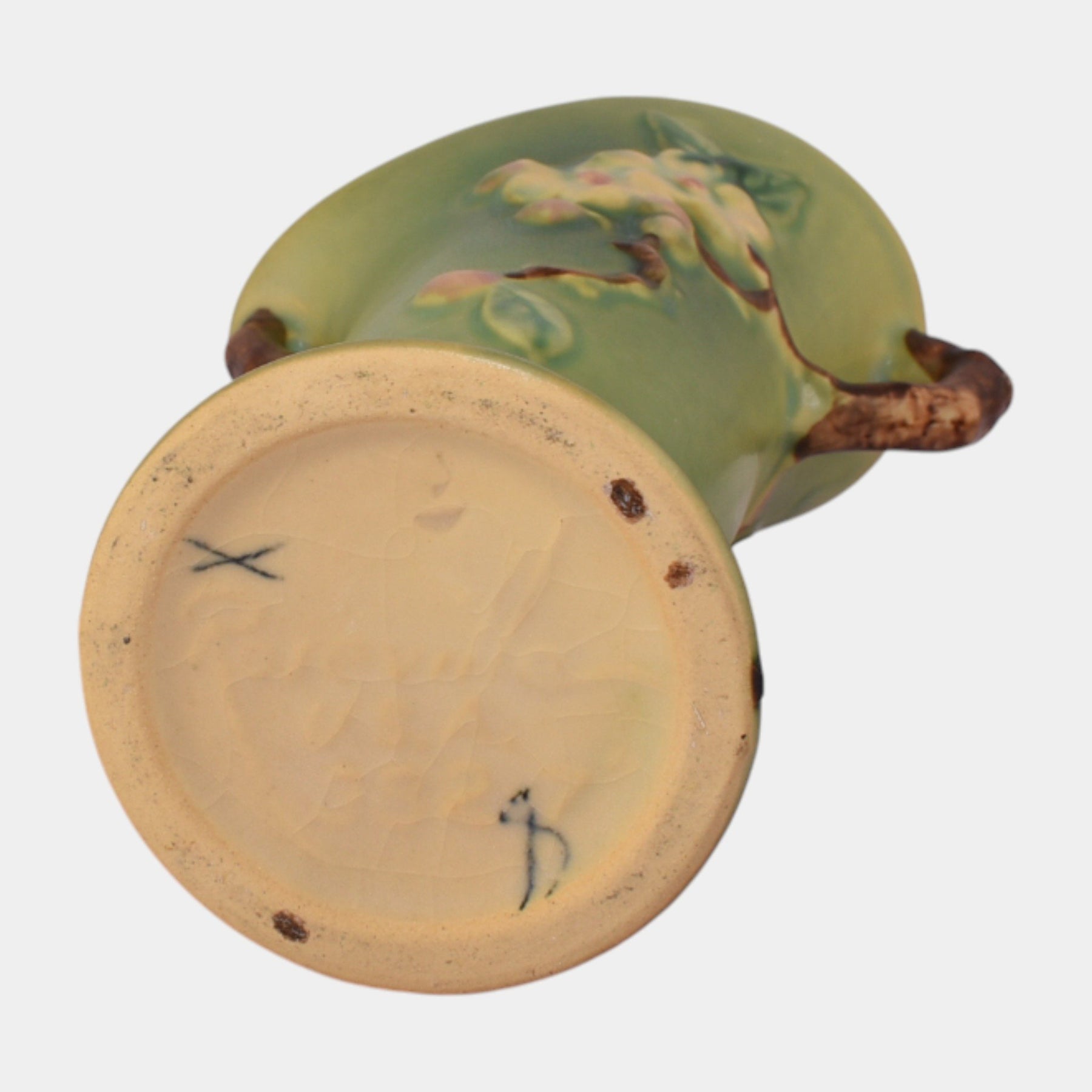 • Roseville Apple Blossom Green 1949 Vintage Art Pottery Ceramic Vase 382-7