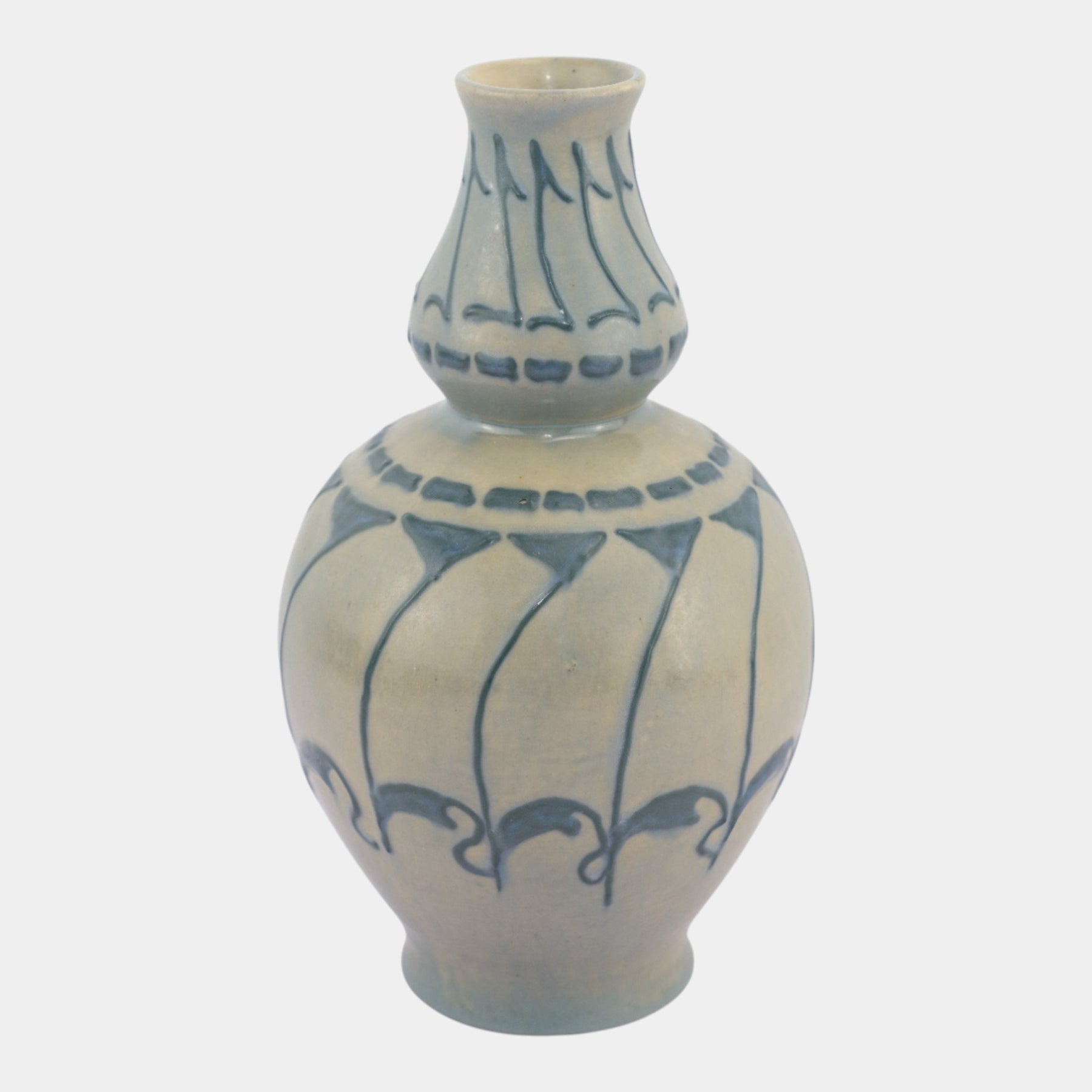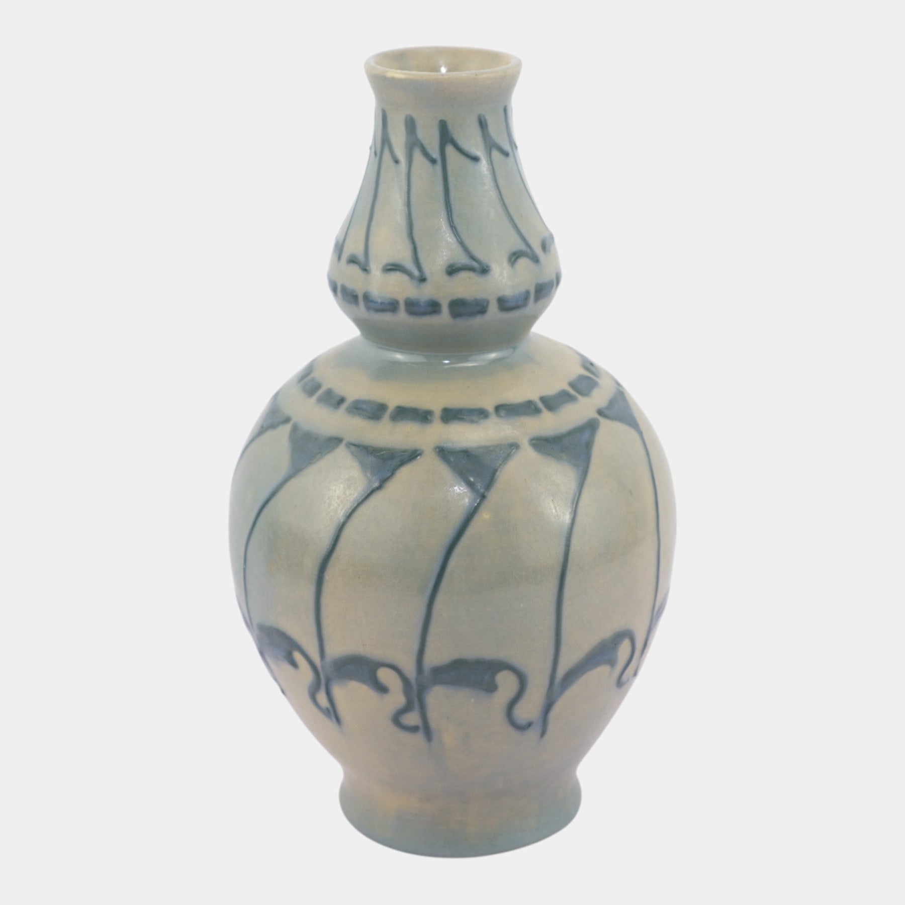 • Roseville Aztec Blue 1905 Vintage Arts And Crafts Pottery Squeeze Bag Vase 23