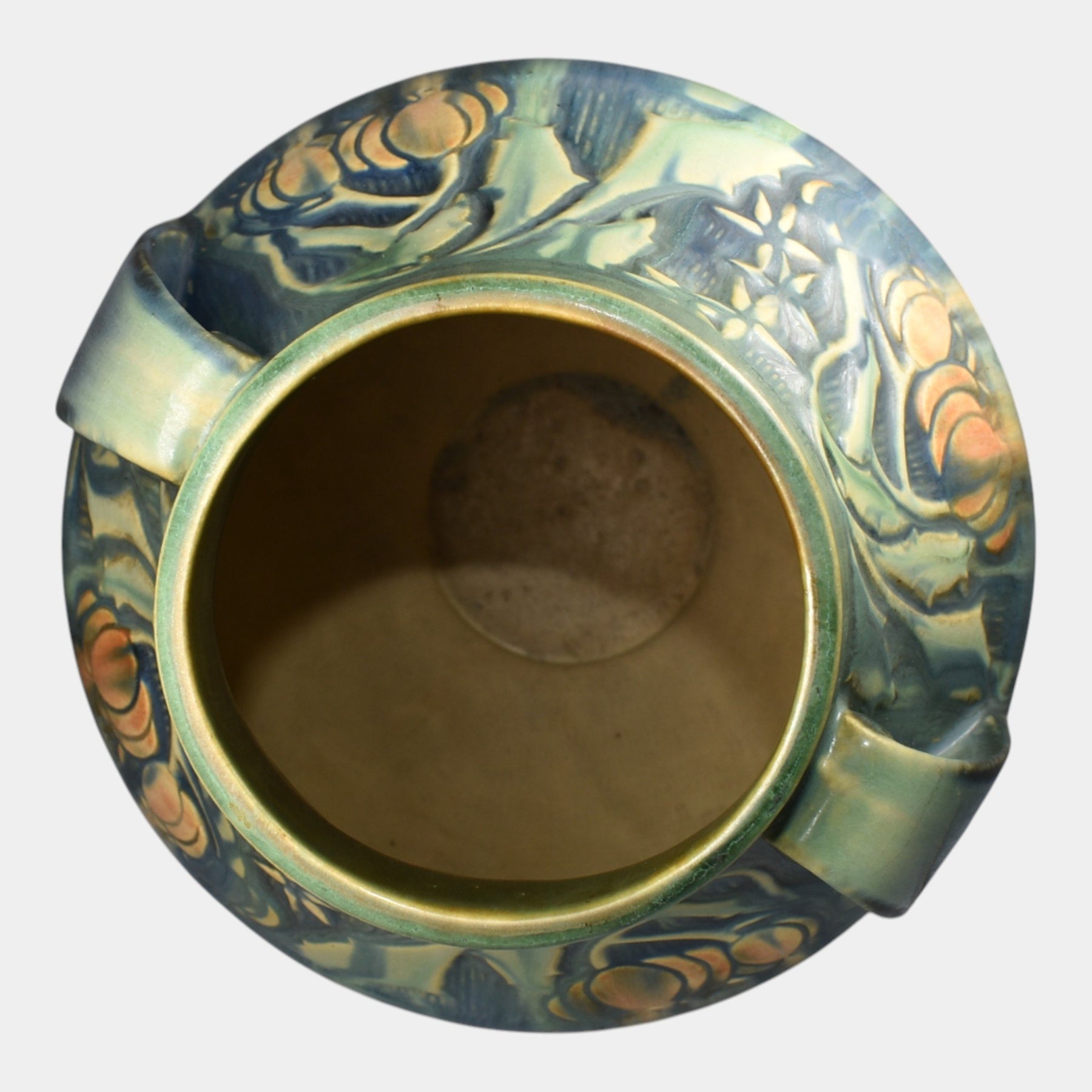 • Roseville Pottery was established in Roseville, Ohio, in 1890. Over the years, the company expanded its production to include a wide range of decorative wares, and by the early 20th century, Roseville had shifted its focus toward producing finely crafted art pottery in response to the growing Arts and Crafts movement. Many popular patterns and styles helped establish Roseville as a leading American art pottery maker, known for its high-quality craftsmanship and distinctive, nature-inspired designs.
