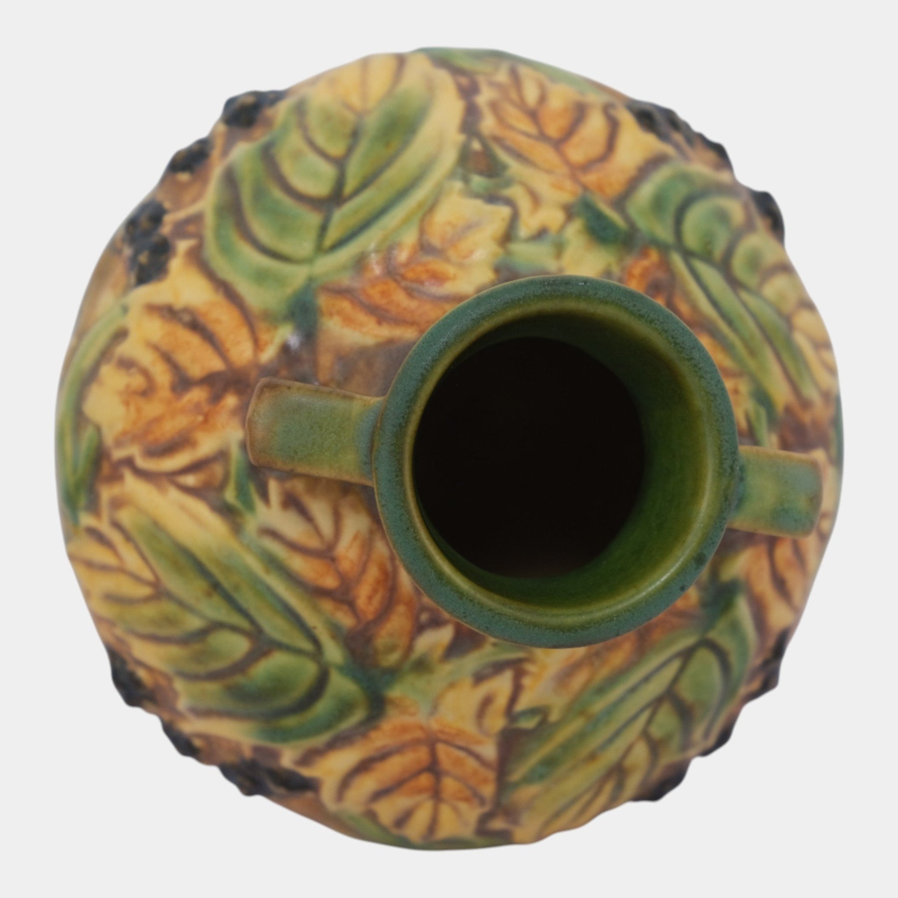 • Roseville Pottery was established in Roseville, Ohio, in 1890. Over the years, the company expanded its production to include a wide range of decorative wares, and by the early 20th century, Roseville had shifted its focus toward producing finely crafted art pottery in response to the growing Arts and Crafts movement. Many popular patterns and styles helped establish Roseville as a leading American art pottery maker, known for its high-quality craftsmanship and distinctive, nature-inspired designs.