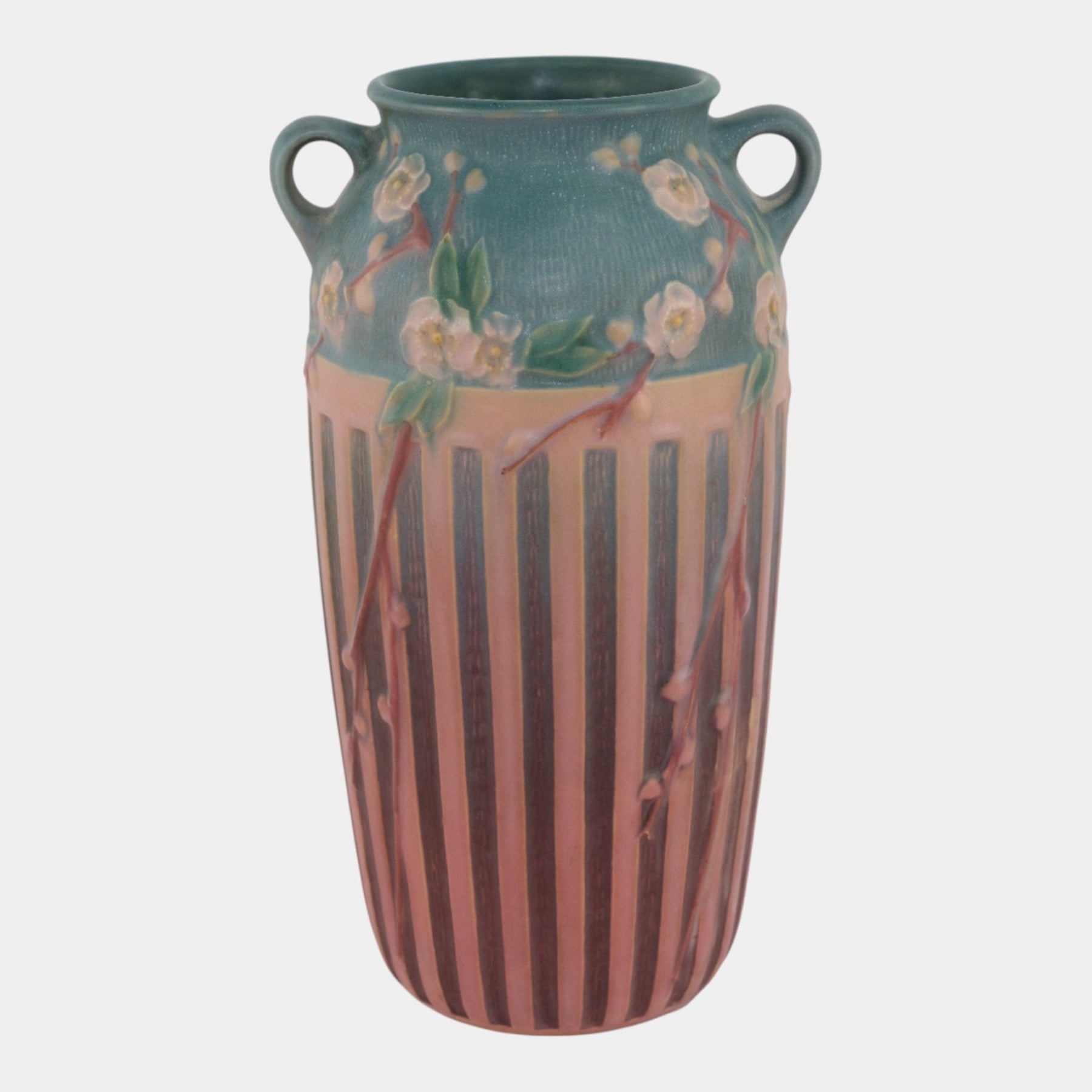 • Roseville Cherry Blossom Pink 1933 Vintage Pottery Ceramic Flower Vase 627-12