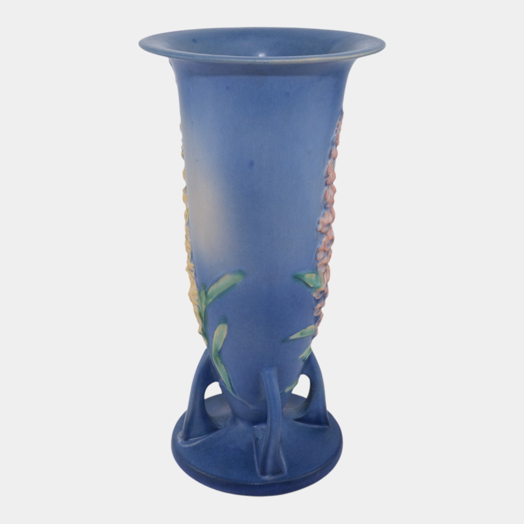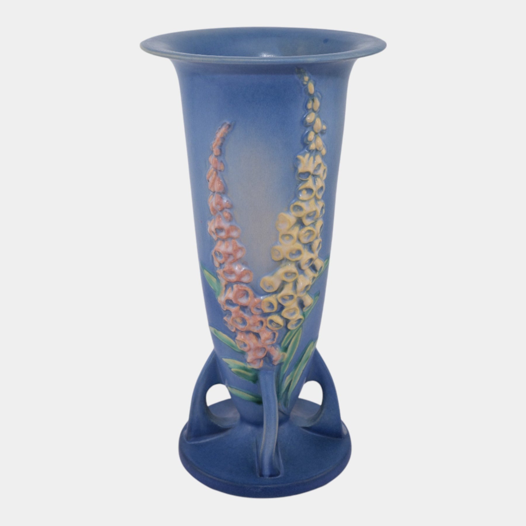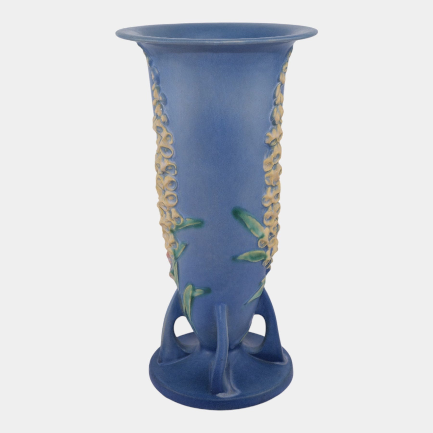 • Roseville Foxglove Blue 1942 Vintage Art Deco Pottery Ceramic Flower Vase 53-14
