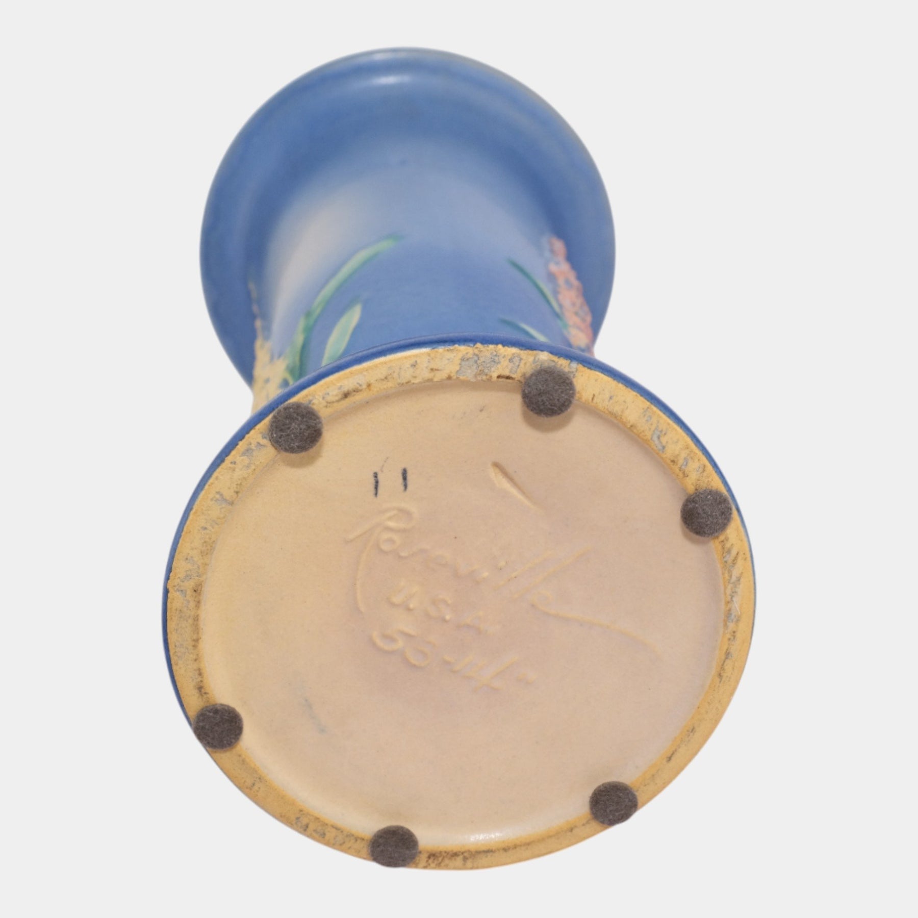 Roseville Foxglove Blue 1942 Vintage Art Deco Pottery Ceramic Flower Vase 53-14
