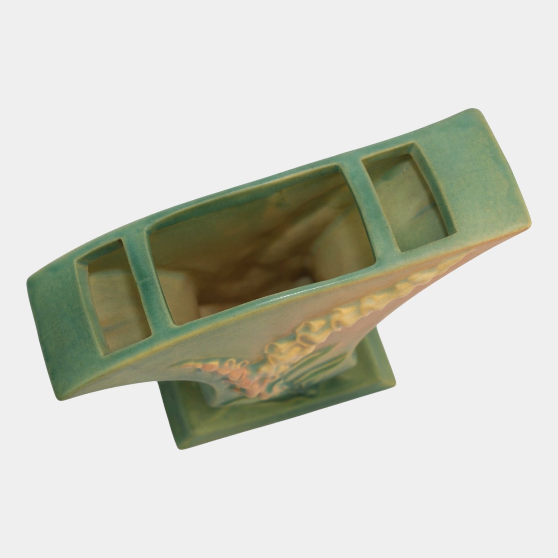 • Roseville Pottery was established in Roseville, Ohio, in 1890. Over the years, the company expanded its production to include a wide range of decorative wares, and by the early 20th century, Roseville had shifted its focus toward producing finely crafted art pottery in response to the growing Arts and Crafts movement. Many popular patterns and styles helped establish Roseville as a leading American art pottery maker, known for its high-quality craftsmanship and distinctive, nature-inspired designs.