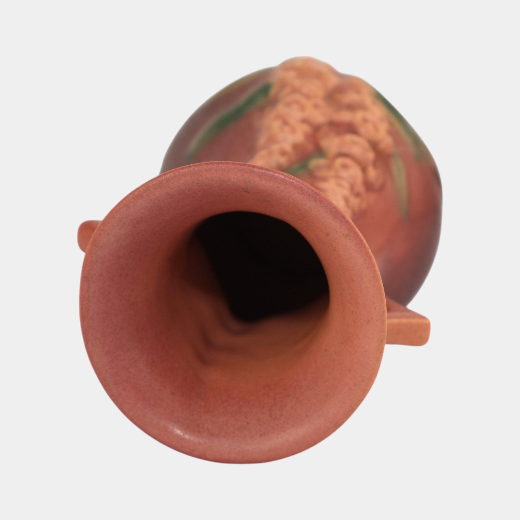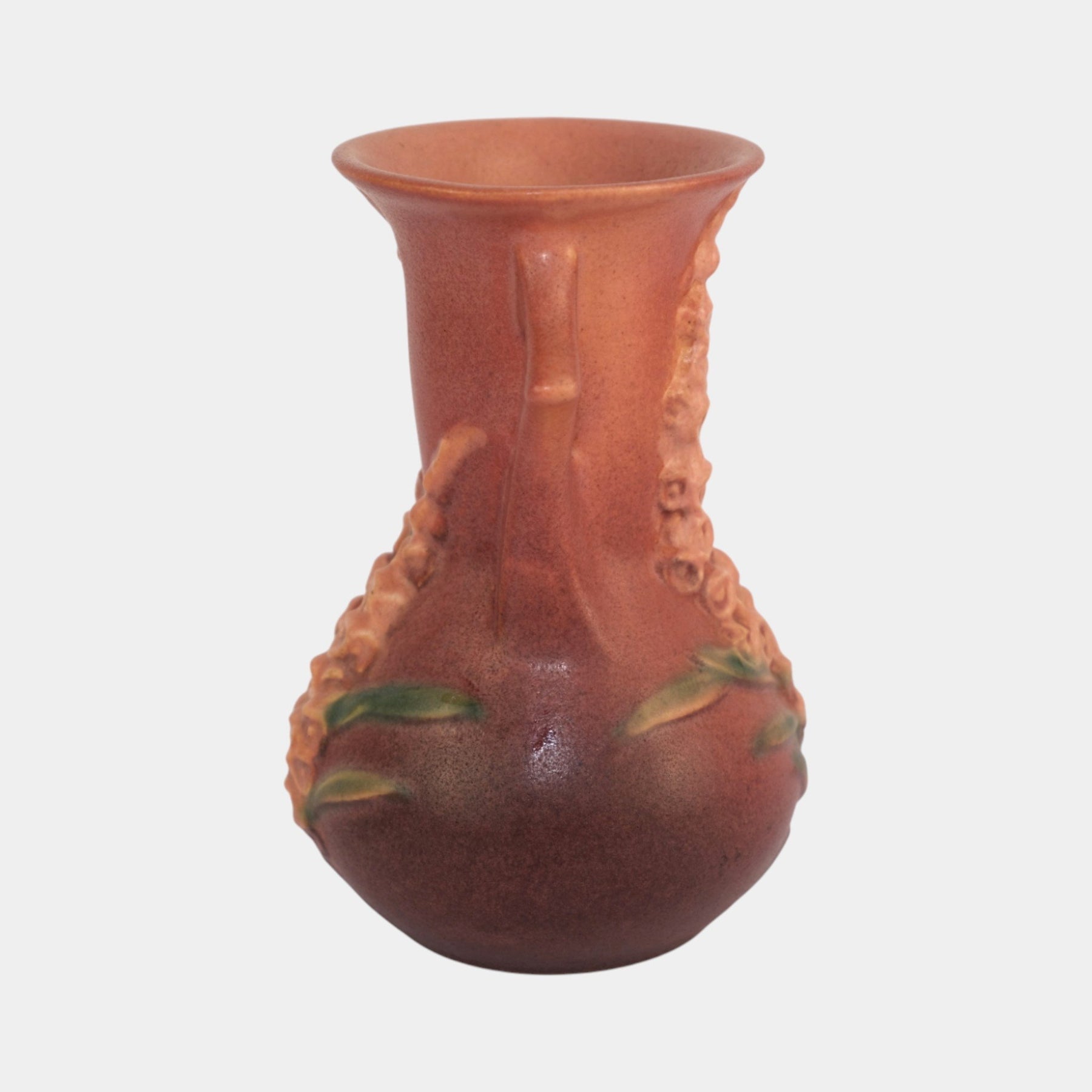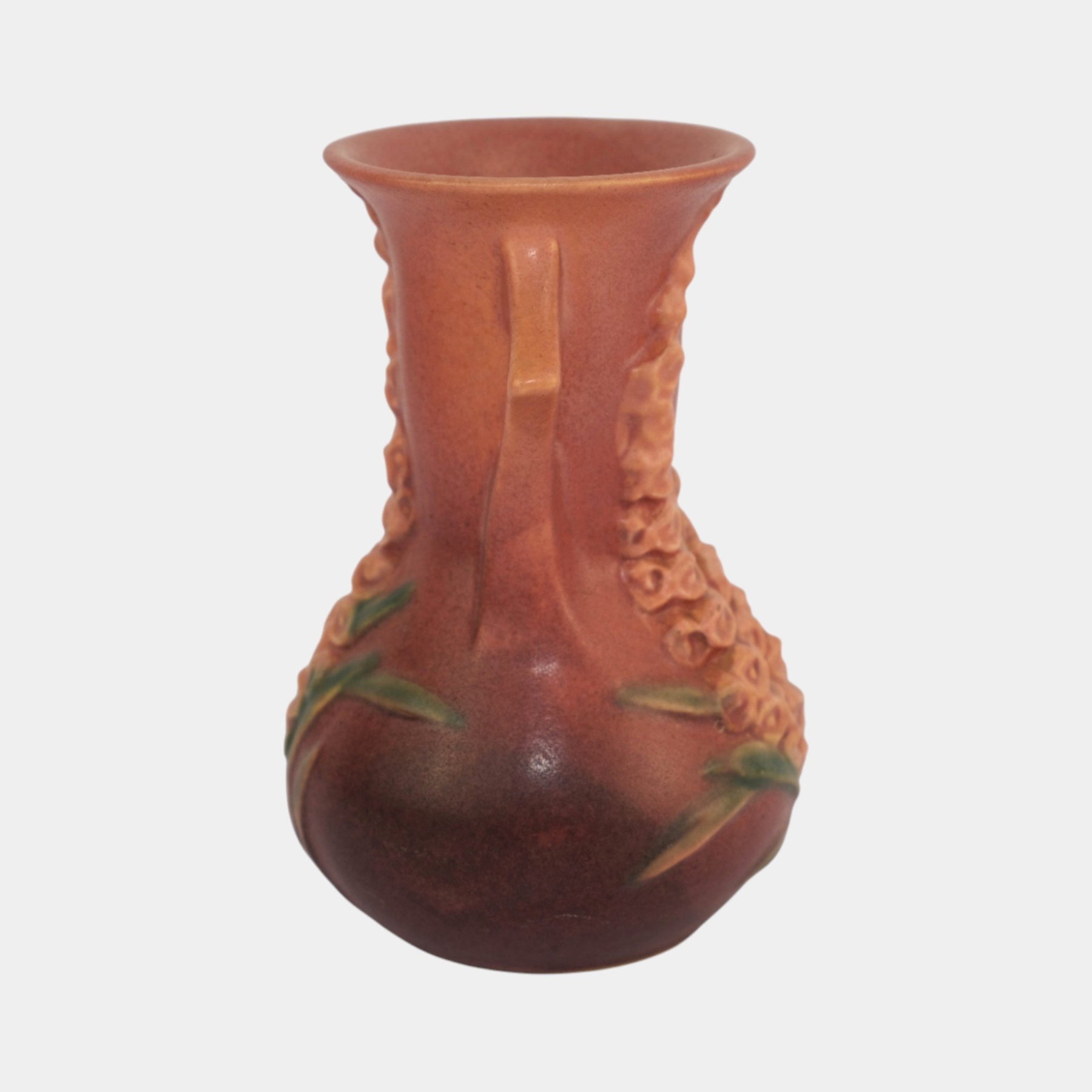 • Roseville Foxglove Pink 1942 Vintage Art Deco Pottery Double Handle Vase 43-6