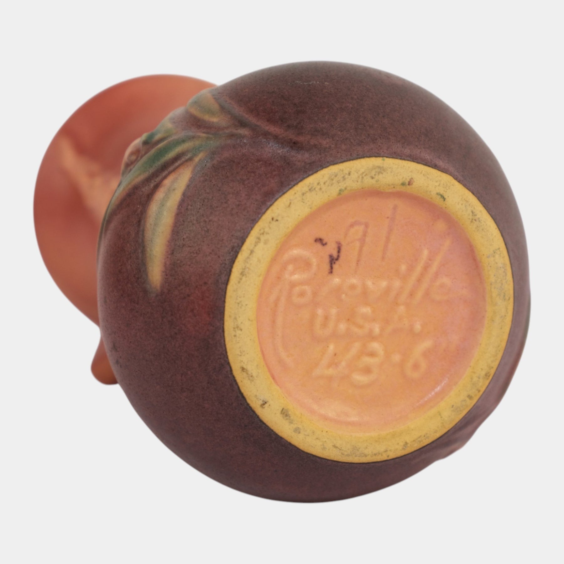 Roseville Foxglove Pink 1942 Vintage Art Deco Pottery Double Handle Vase 43-6