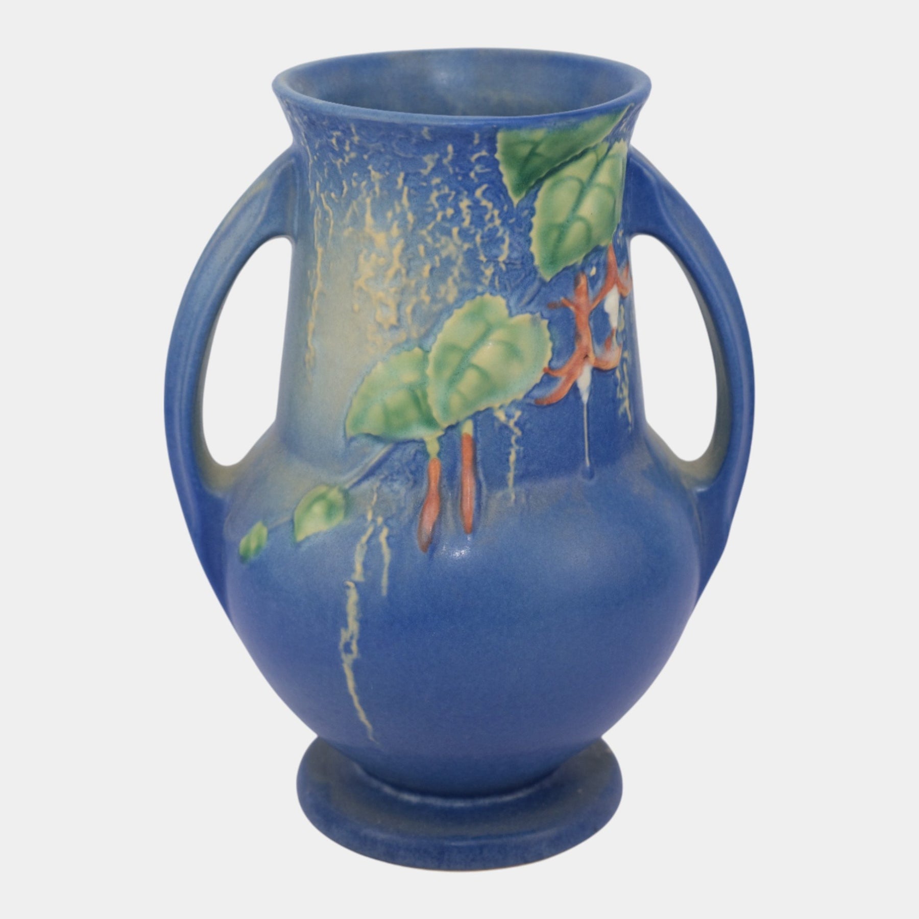 • Roseville Fuchsia Blue 1938 Vintage Art Pottery Ceramic Flower Vase 898-8