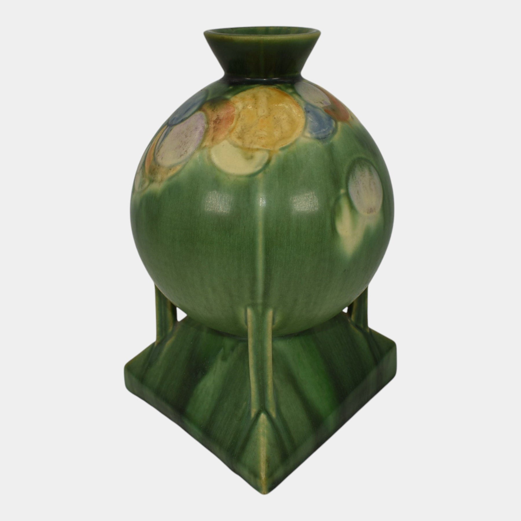 • Roseville Futura Green 1928 Vintage Art Deco Pottery Balloons Globe Vase 404-8