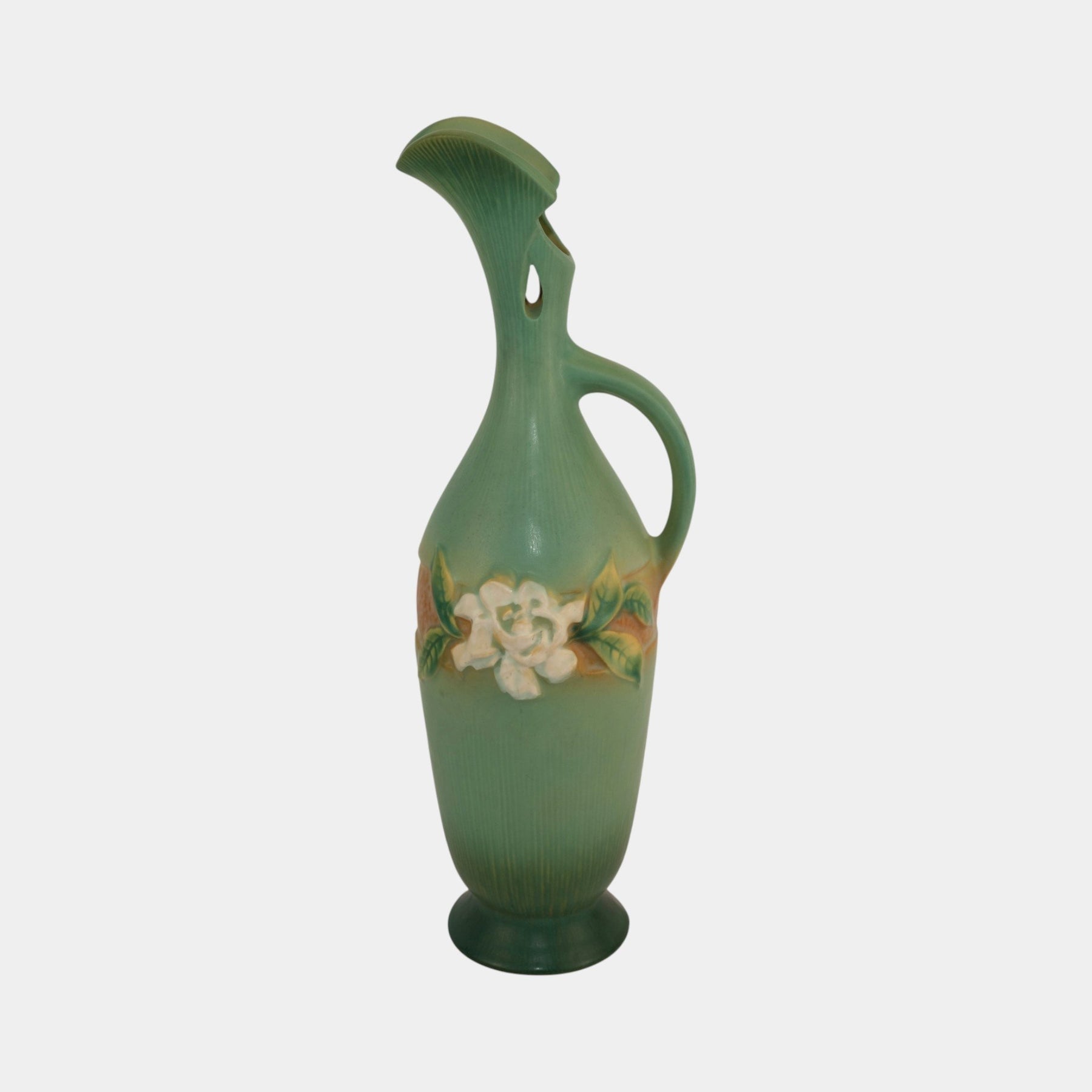 • Roseville Gardenia Green 1950 Vintage Art Pottery Ceramic Ewer 618-15