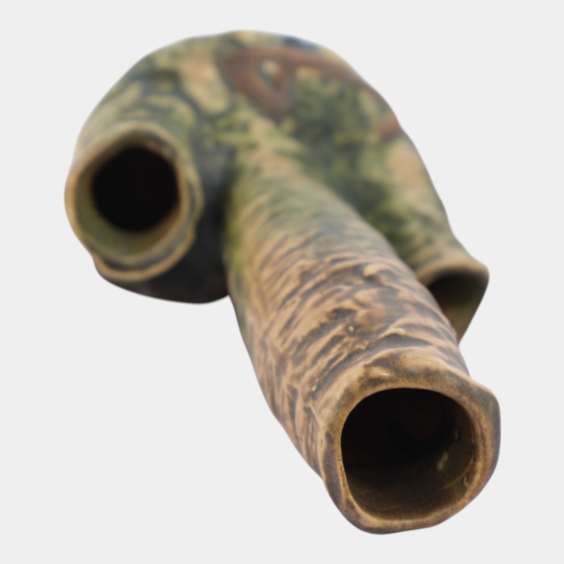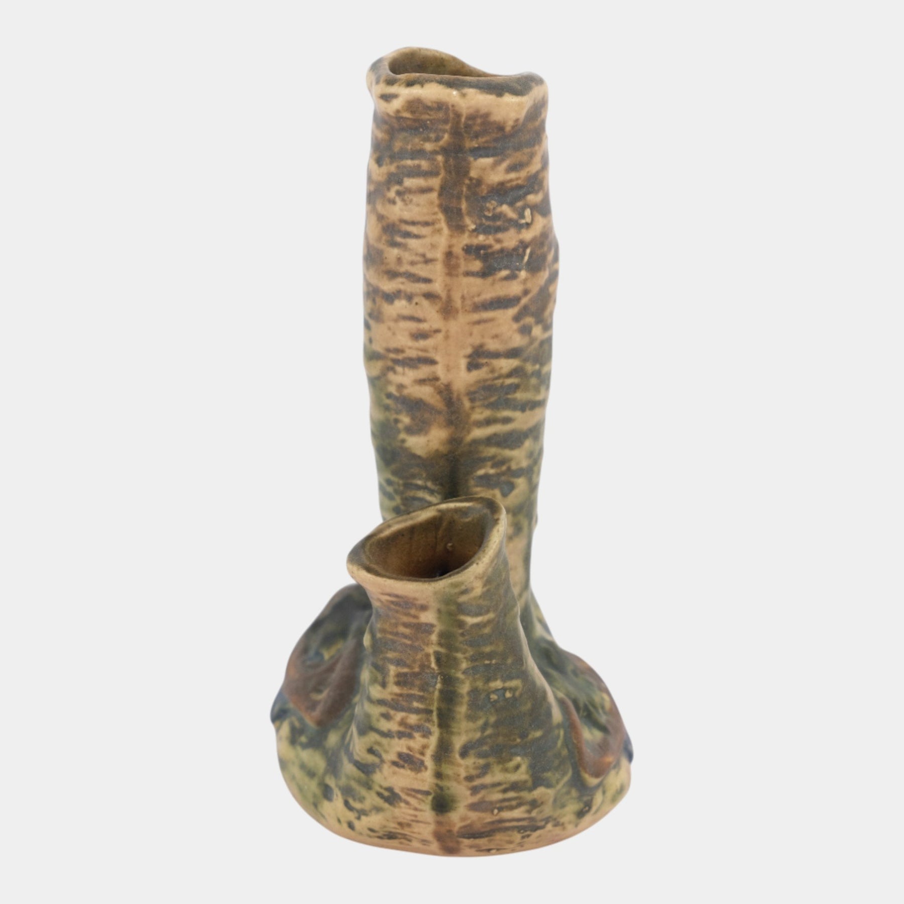 • Roseville Imperial I 1921 Vintage Arts And Crafts Pottery Brown Triple Vase 29-8