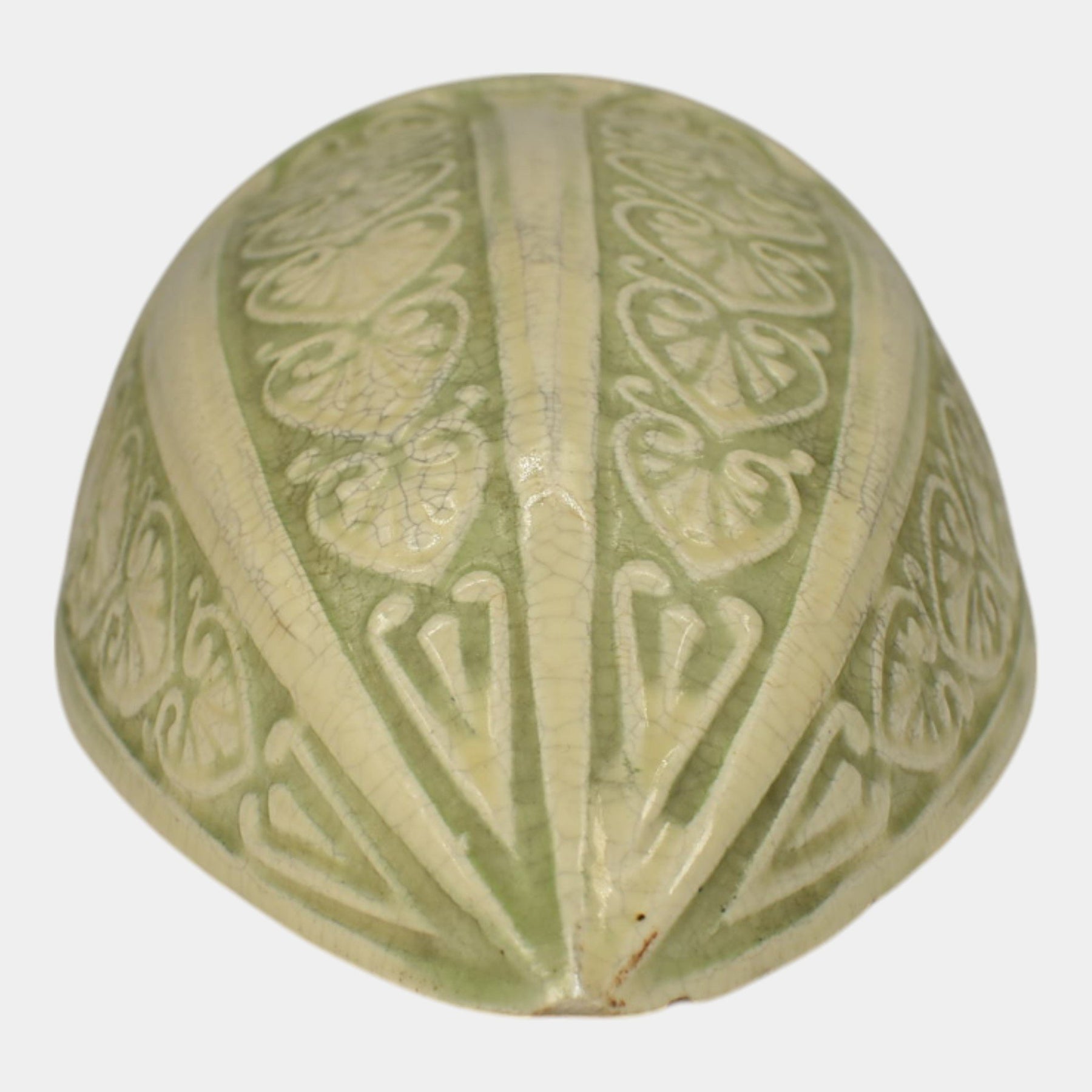 • Roseville Pottery was established in Roseville, Ohio, in 1890. Over the years, the company expanded its production to include a wide range of decorative wares, and by the early 20th century, Roseville had shifted its focus toward producing finely crafted art pottery in response to the growing Arts and Crafts movement. Many popular patterns and styles helped establish Roseville as a leading American art pottery maker, known for its high-quality craftsmanship and distinctive, nature-inspired designs.