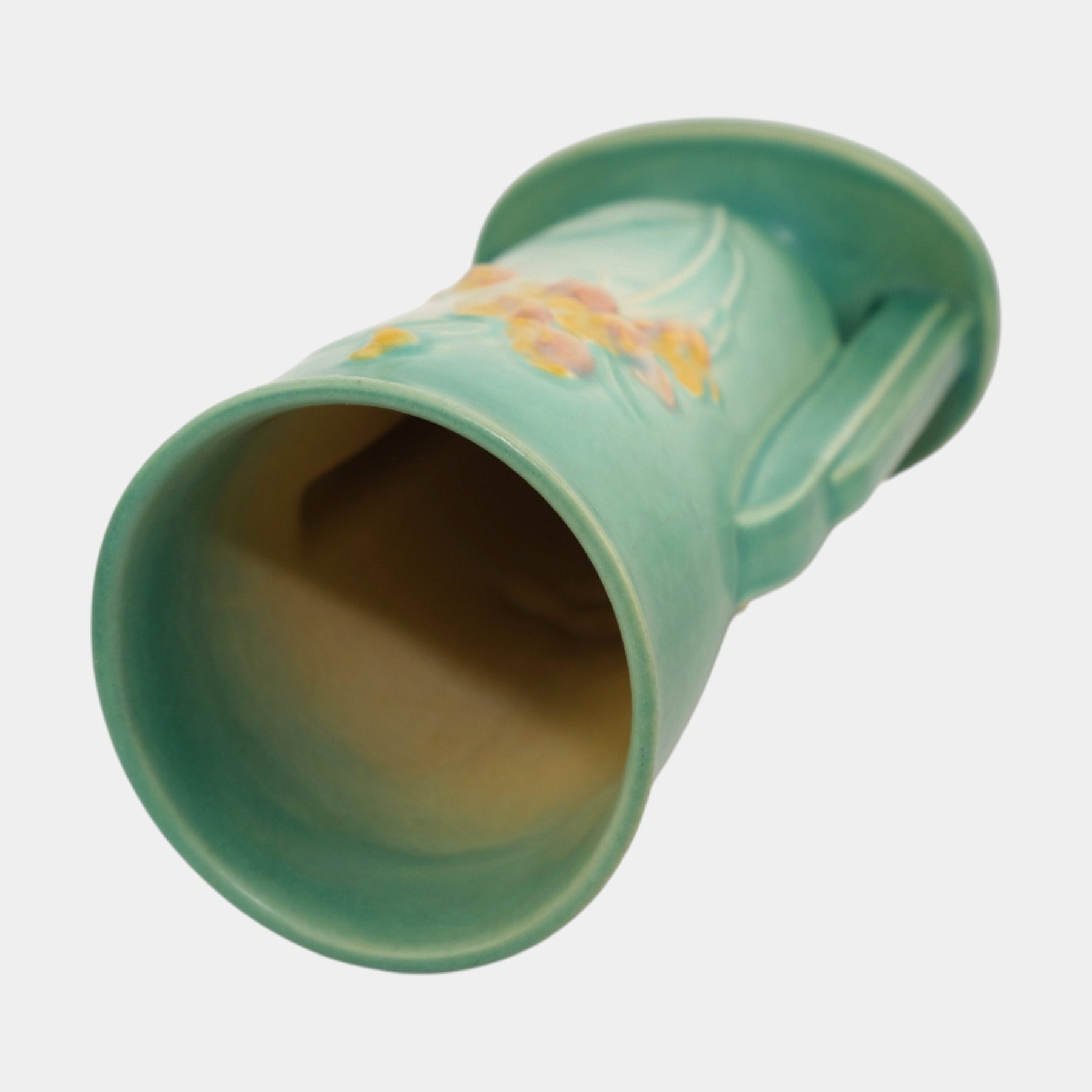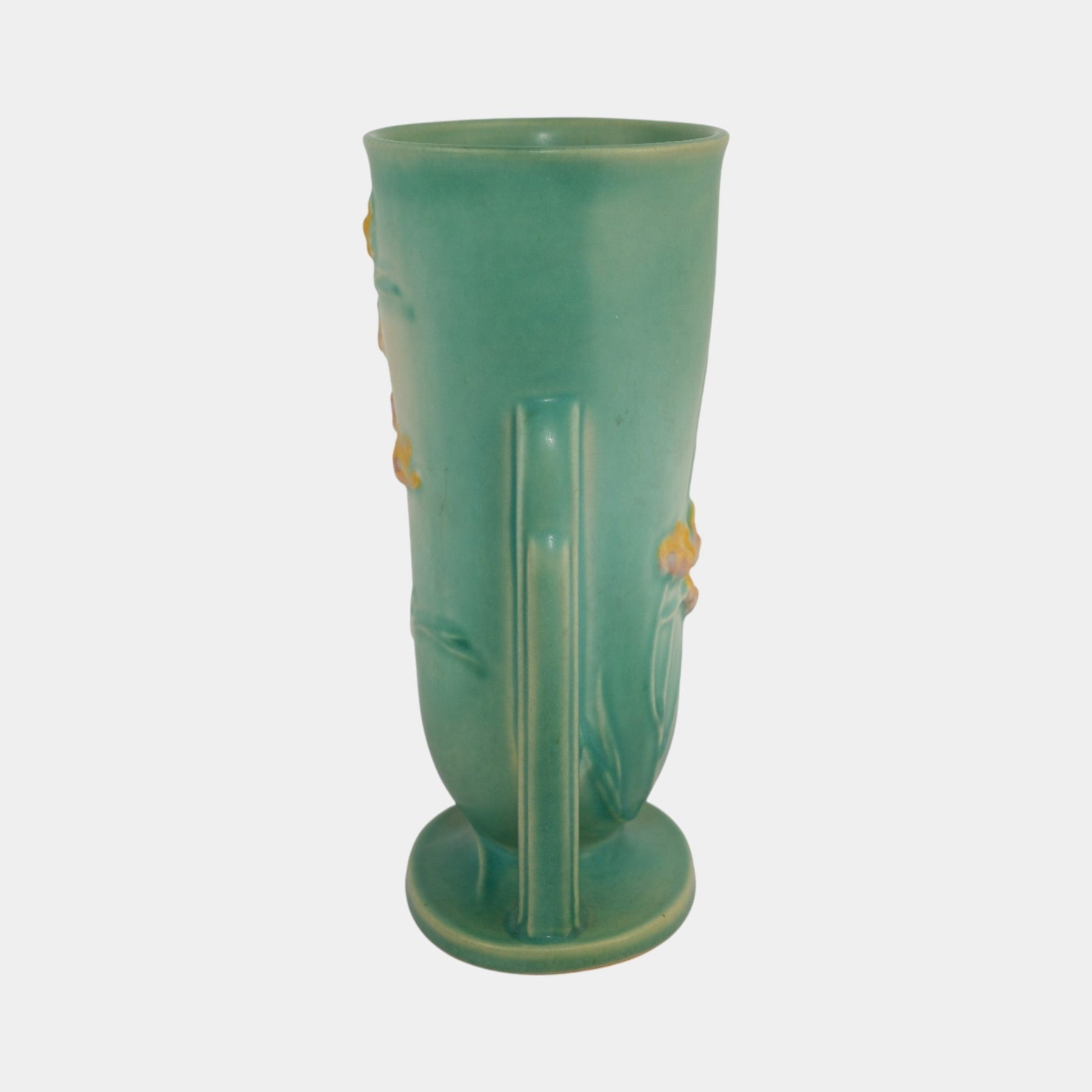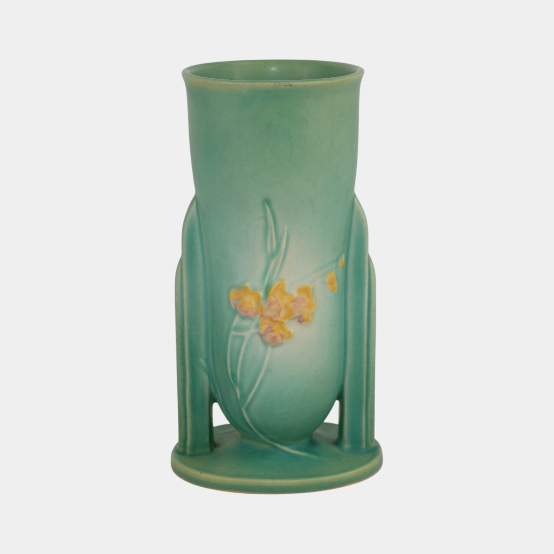 • Roseville Ixia Green 1937 Vintage Art Deco Pottery Buttressed Ceramic Vase 856-8