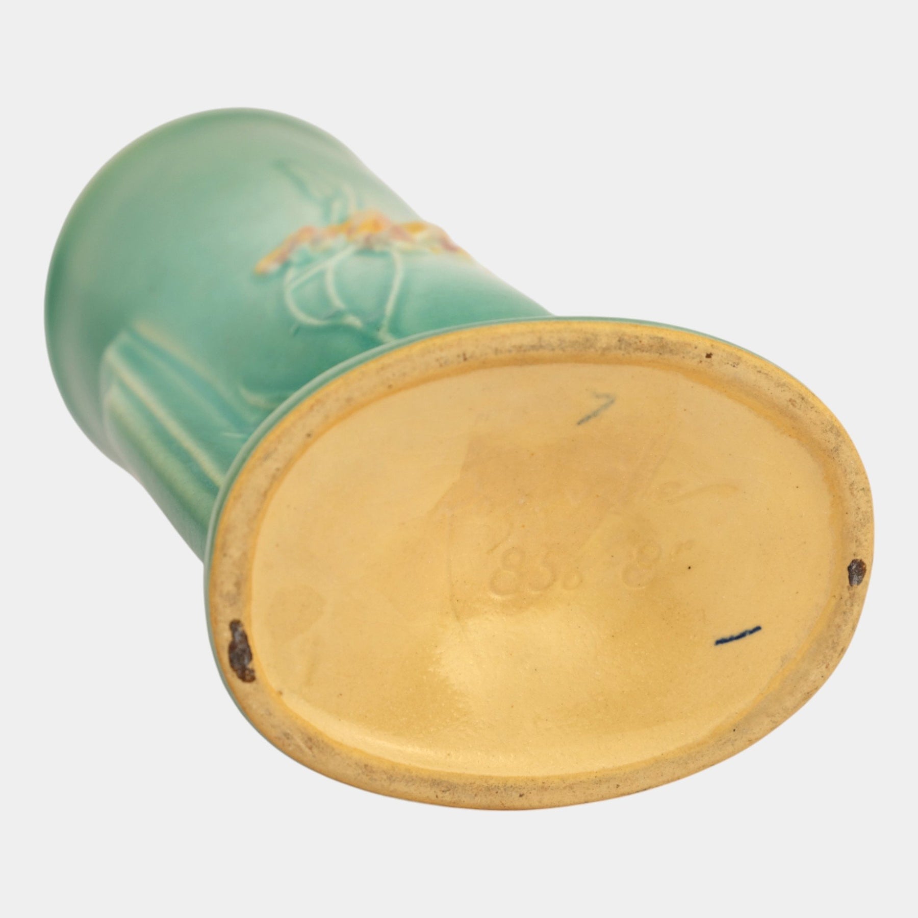 Roseville Ixia Green 1937 Vintage Art Deco Pottery Buttressed Ceramic Vase 856-8