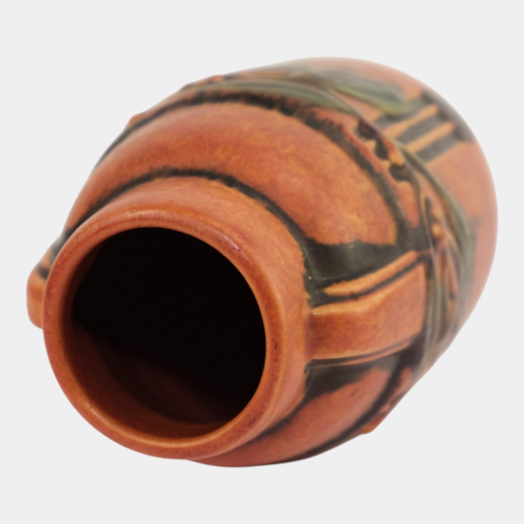 • Roseville Pottery was established in Roseville, Ohio, in 1890. Over the years, the company expanded its production to include a wide range of decorative wares, and by the early 20th century, Roseville had shifted its focus toward producing finely crafted art pottery in response to the growing Arts and Crafts movement. Many popular patterns and styles helped establish Roseville as a leading American art pottery maker, known for its high-quality craftsmanship and distinctive, nature-inspired designs.