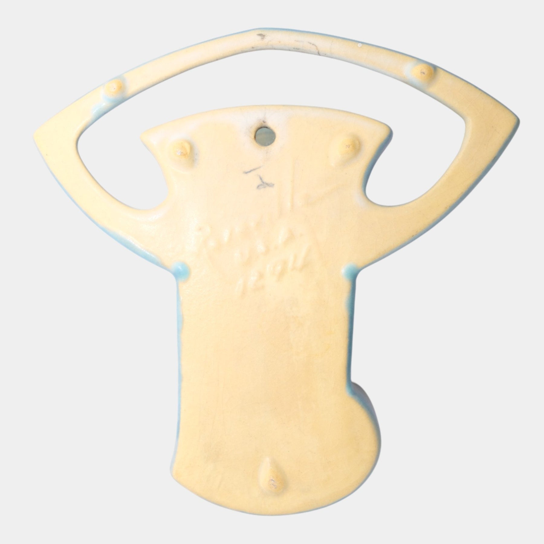 • Decorative Roseville Pottery Magnolia blue wall pocket.