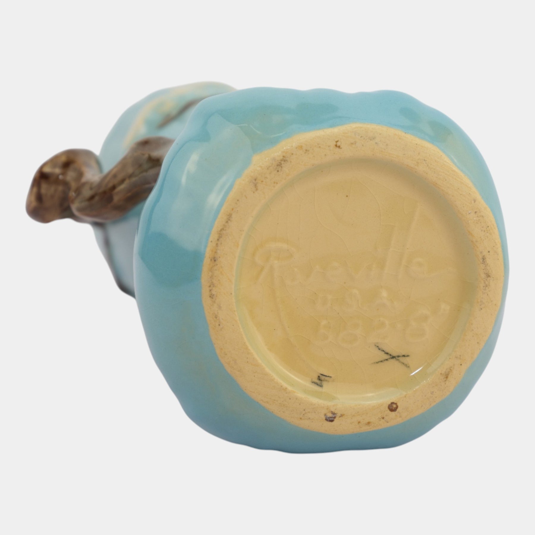 • Roseville Ming Tree Blue 1949 Mid Century Modern Art Pottery Handled Vase 582-8