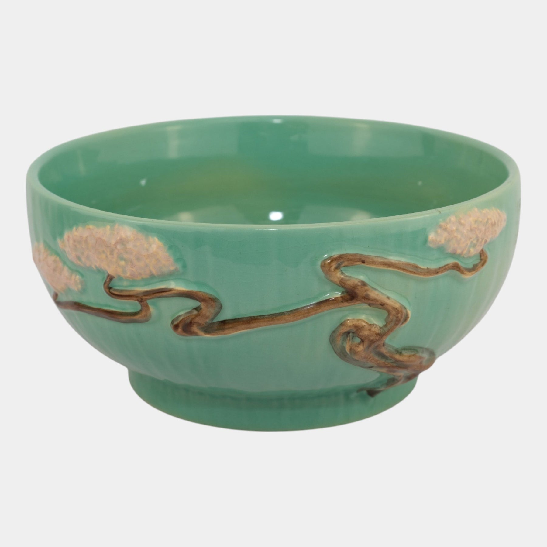 • Roseville Ming Tree Green 1949 Mid Century Modern Pottery Ceramic Bowl 527-9
