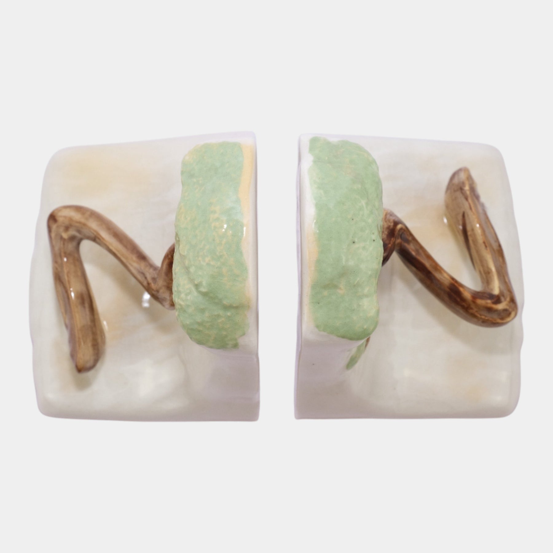 • Roseville Ming Tree White 1949 Mid Century Modern Pottery Ceramic Bookends 559