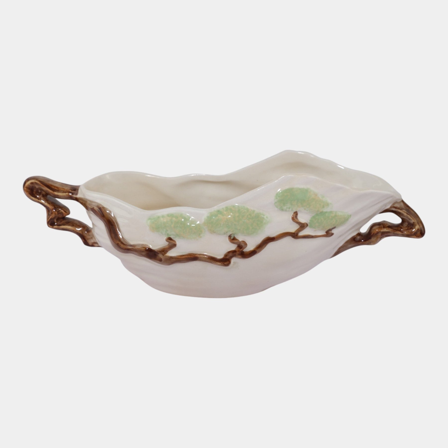 • Roseville Ming Tree White 1949 Mid Century Modern Pottery Console Bowl 528-10