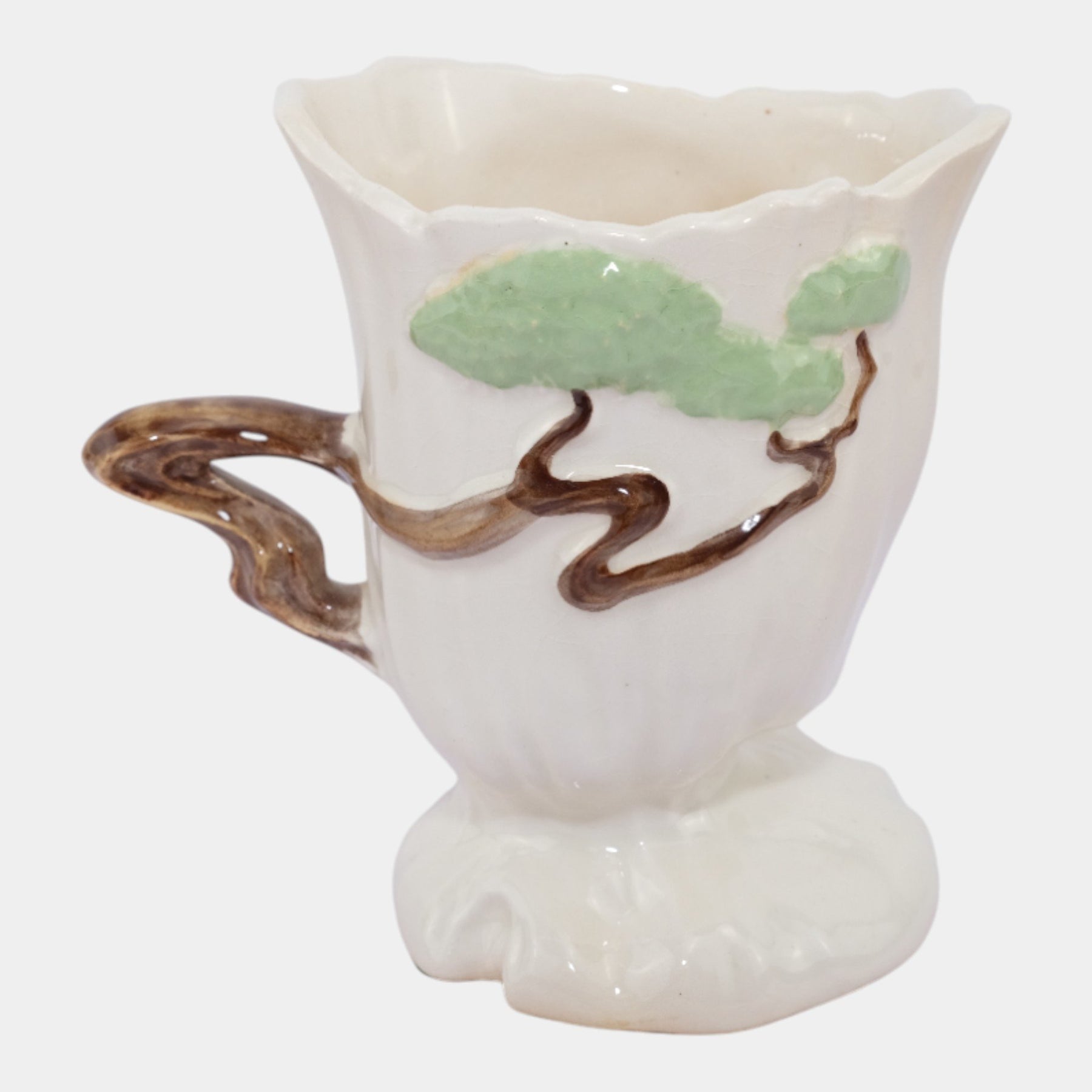 • Roseville Pottery was established in Roseville, Ohio, in 1890. Over the years, the company expanded its production to include a wide range of decorative wares, and by the early 20th century, Roseville had shifted its focus toward producing finely crafted art pottery in response to the growing Arts and Crafts movement. Many popular patterns and styles helped establish Roseville as a leading American art pottery maker, known for its high-quality craftsmanship and distinctive, nature-inspired designs.