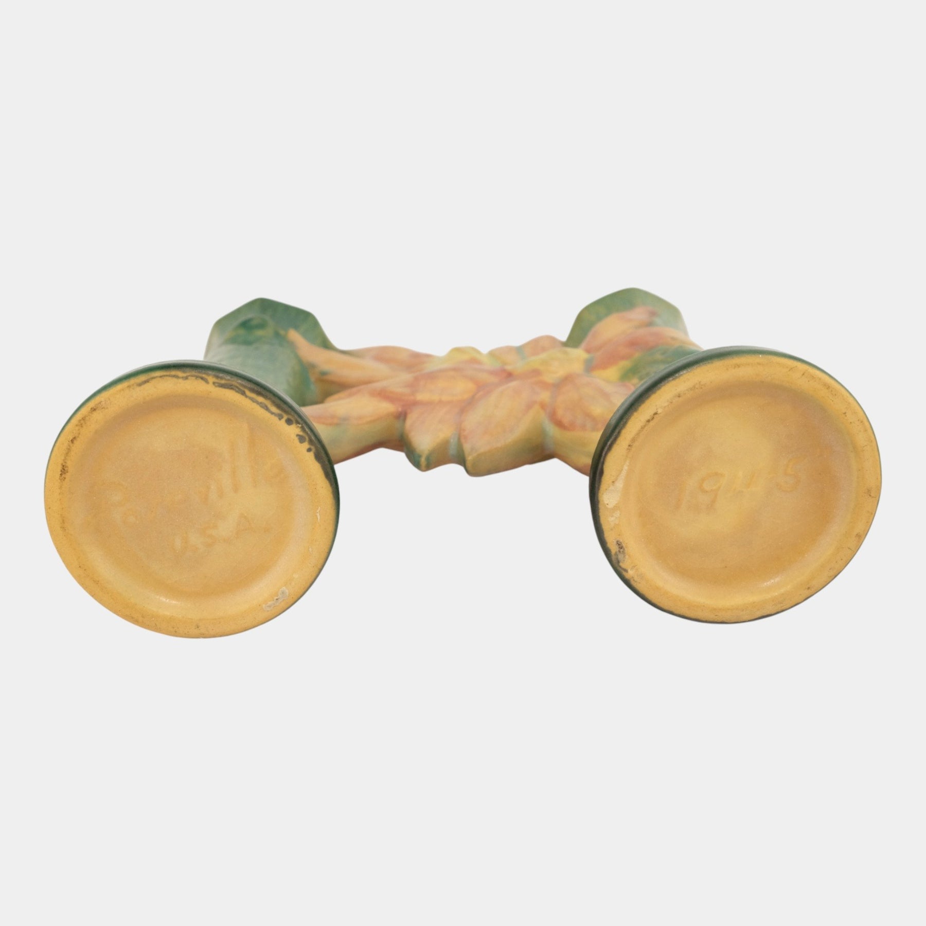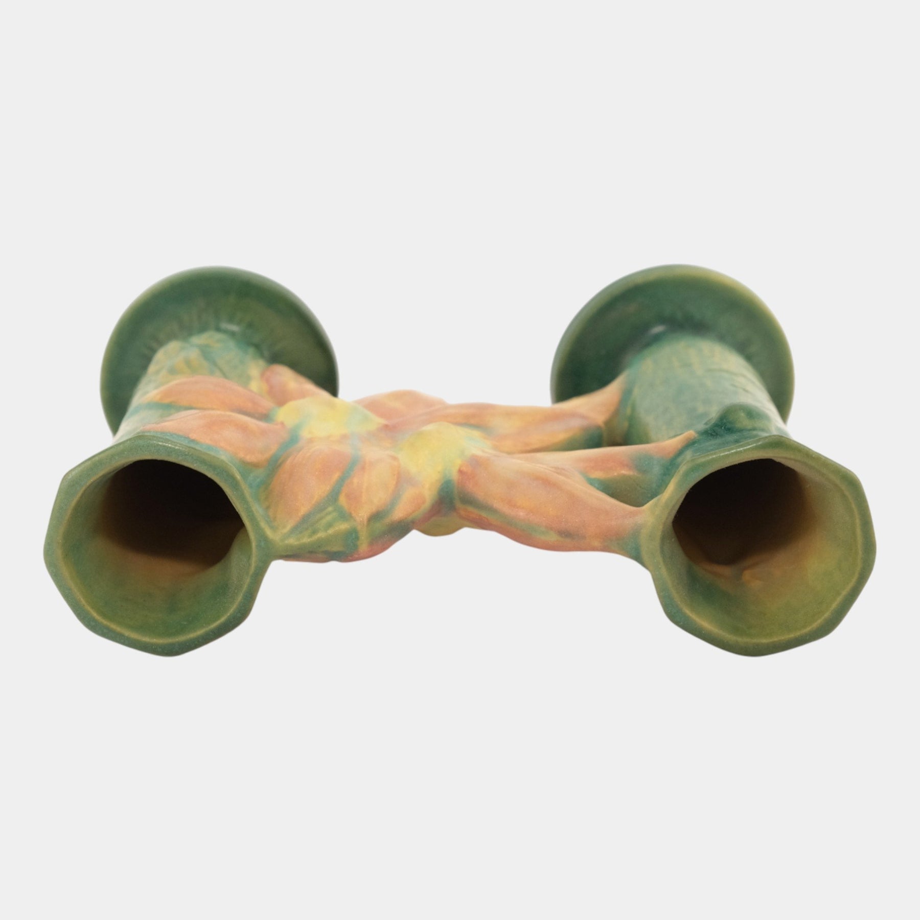 • Roseville Pottery Clematis Mid Century Green Double Bud Vase 194-5