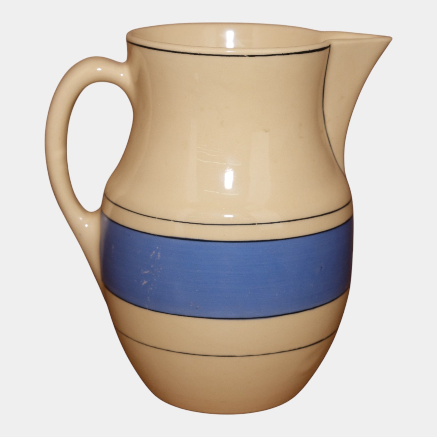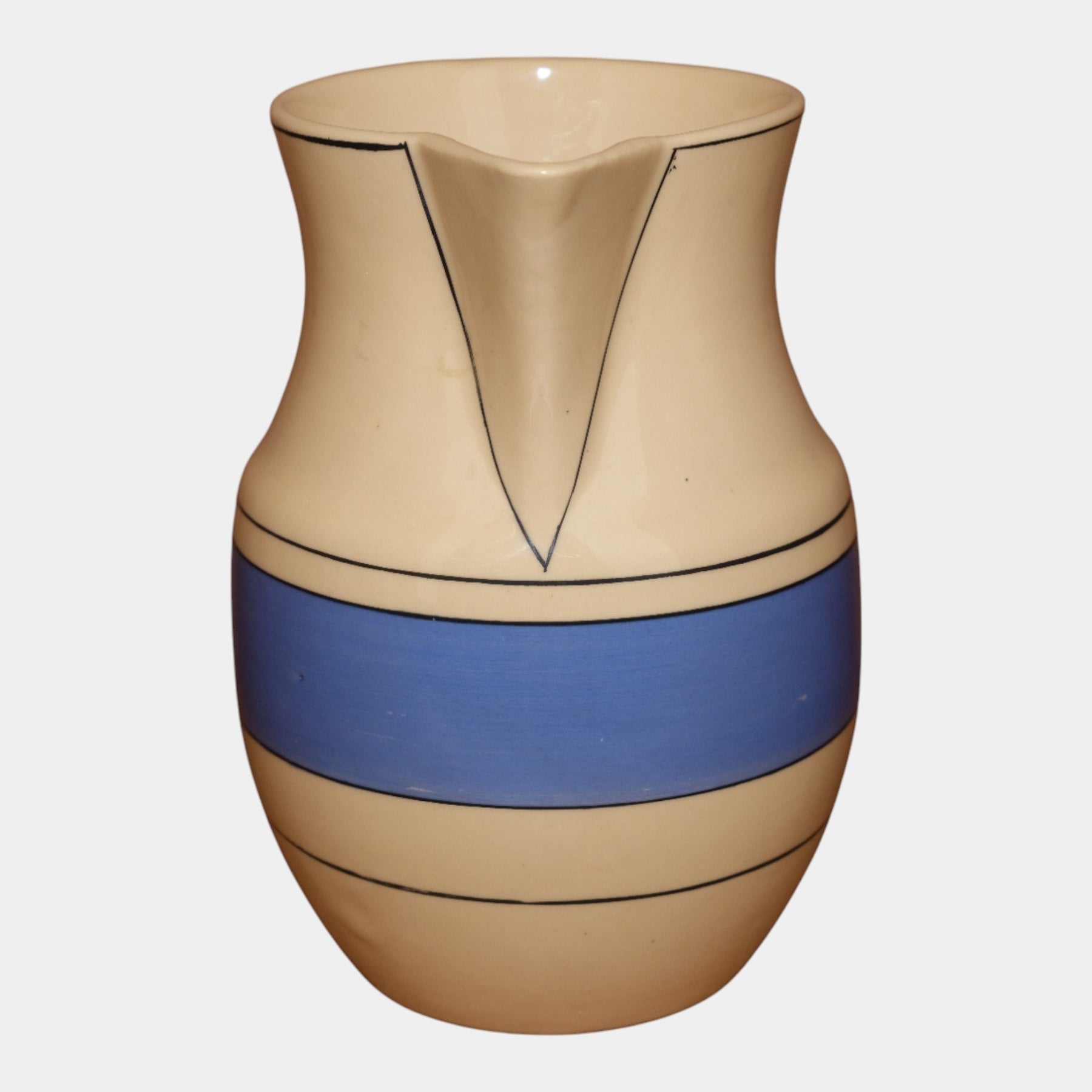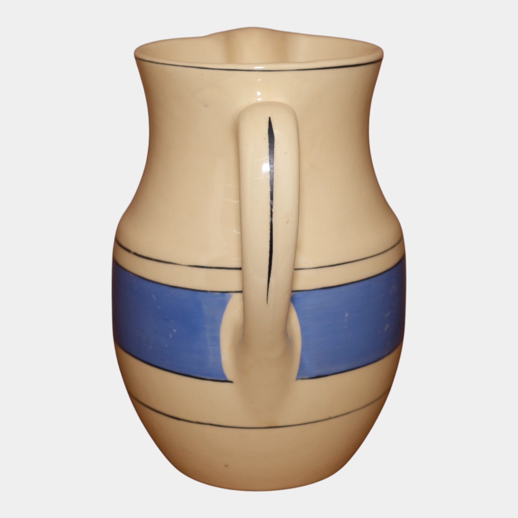 • Roseville Pottery Creamware Utility Ware 1920 Blue Banded Art Deco Pitcher 1317