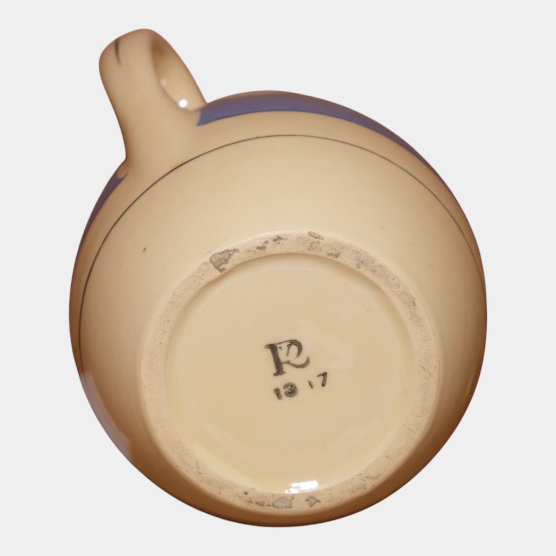 Roseville Pottery Creamware Utility Ware 1920 Blue Banded Art Deco Pitcher 1317