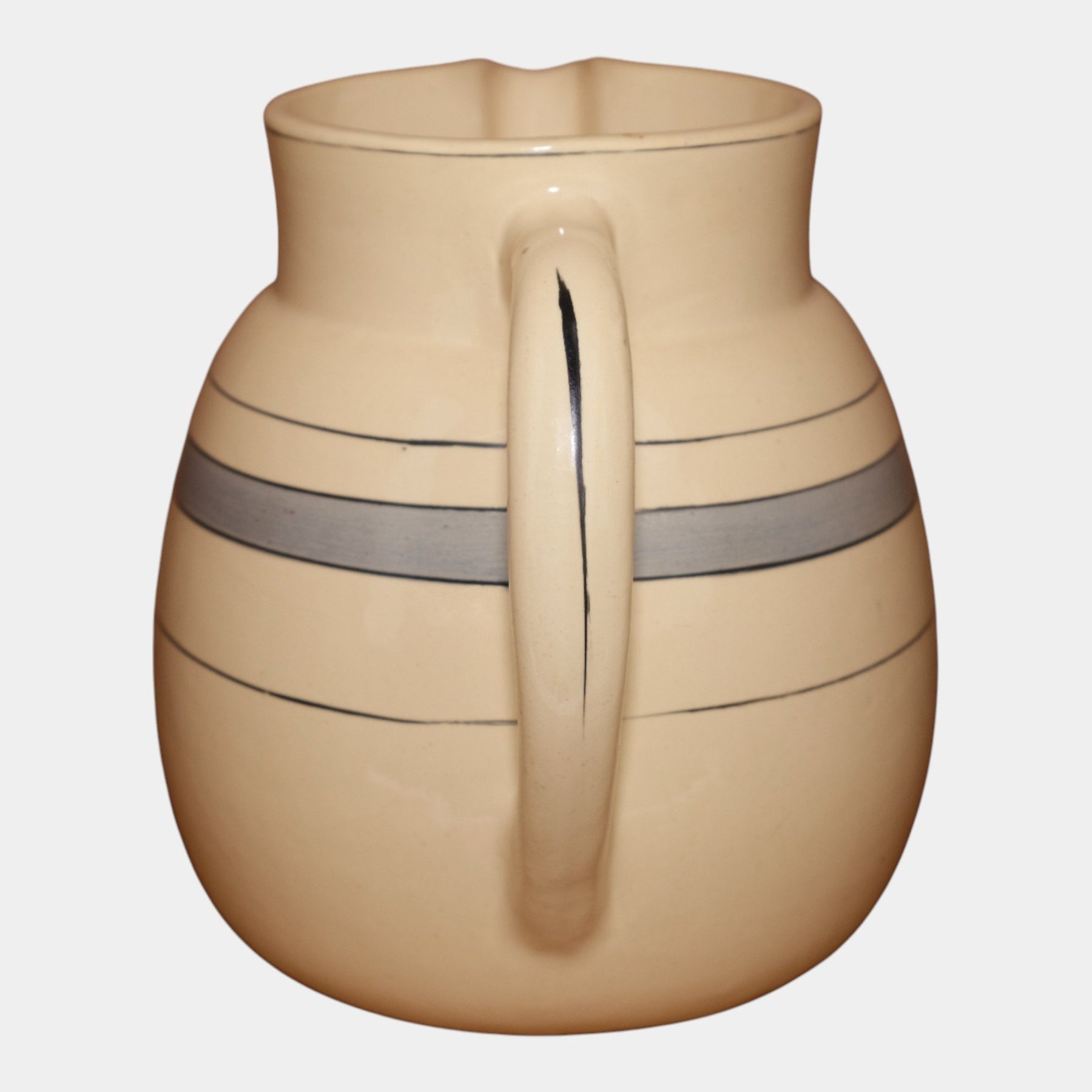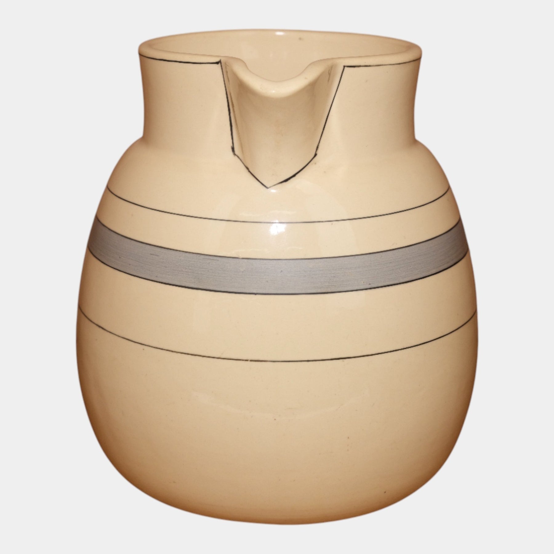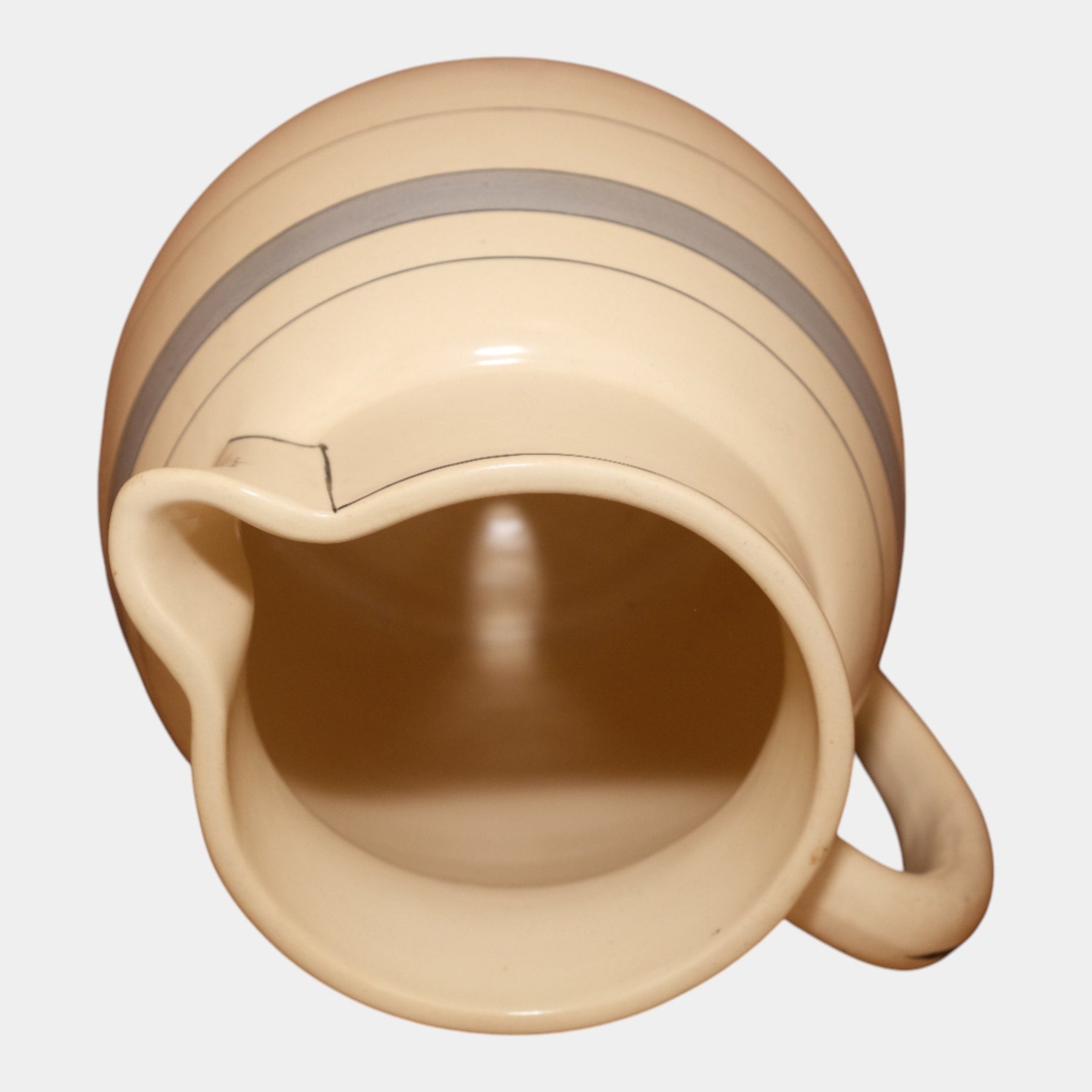 • Roseville Pottery Creamware Utility Ware 1920 Gray Banded Art Deco Pitcher