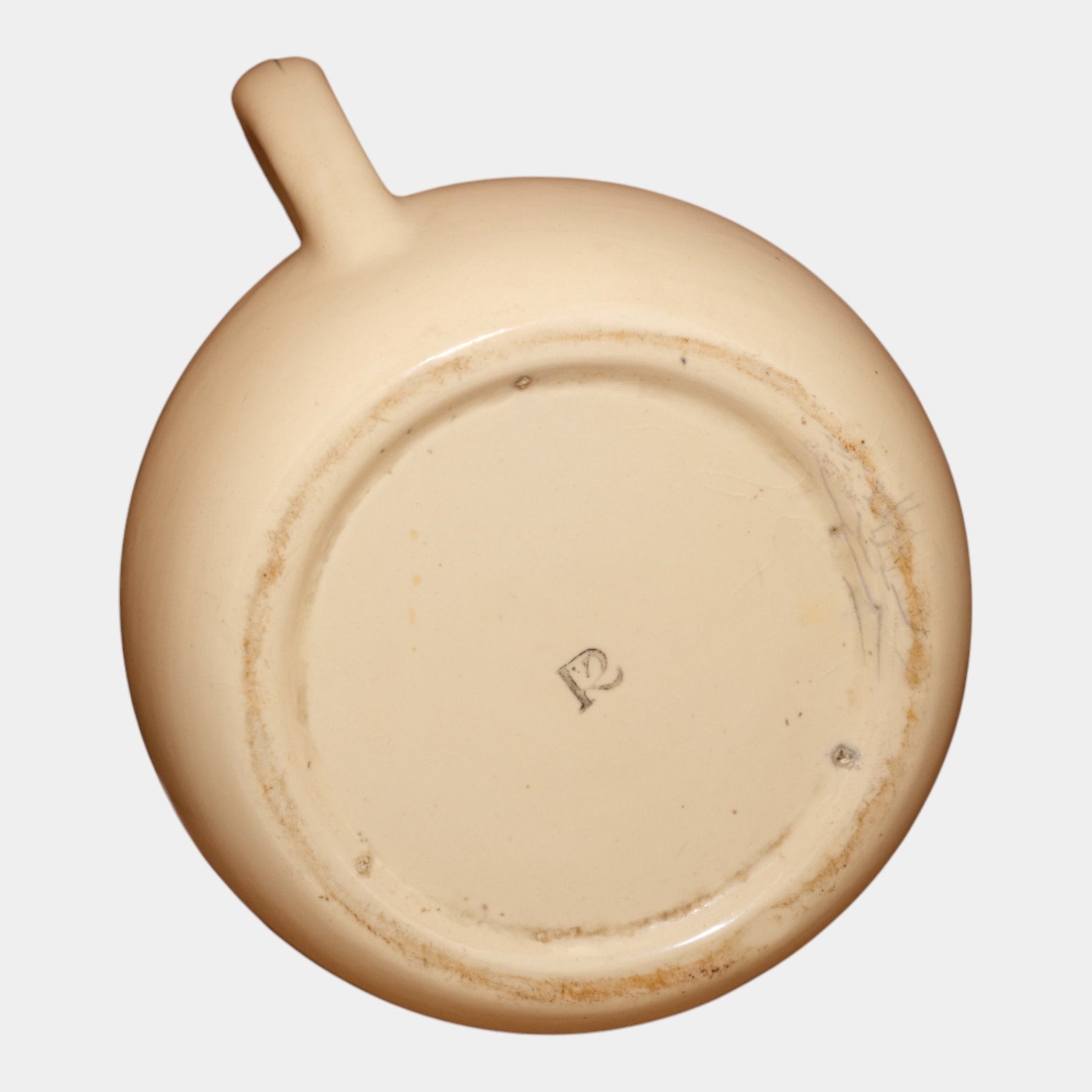 • Elegantly simple and smoothly curved, this classic Roseville pitcher features understated Art Deco styling with crisp horizontal banding, a warm cream glaze, and a rounded utilitarian form that feels both timeless and inviting.