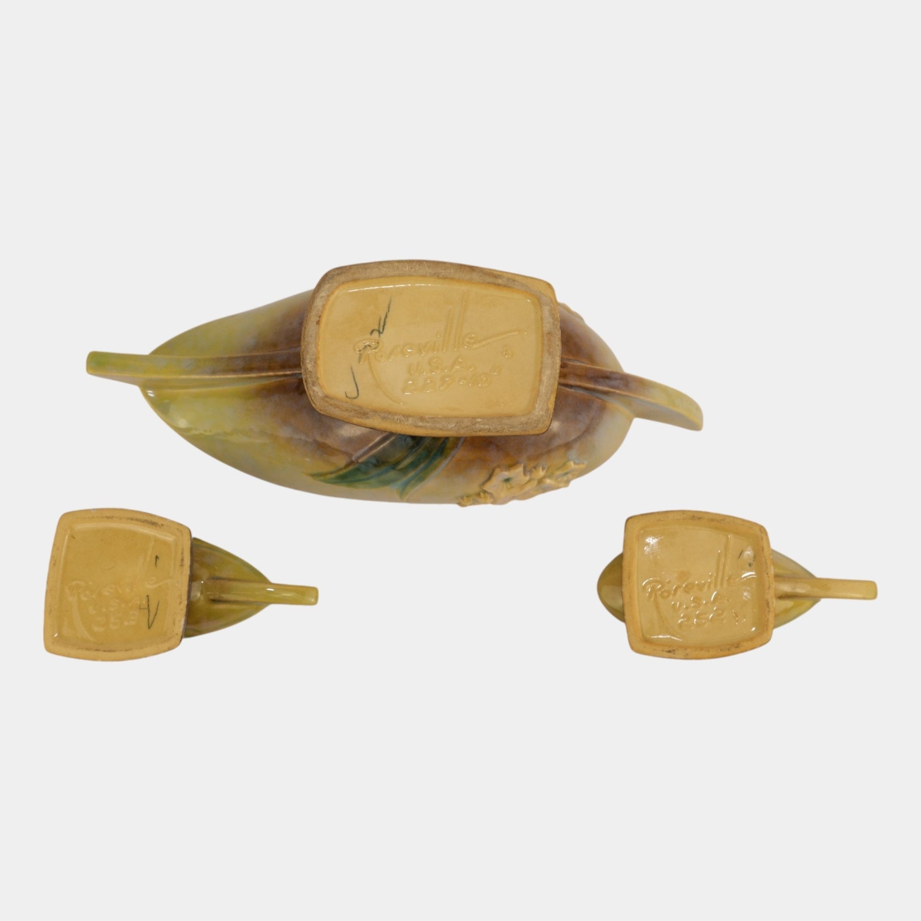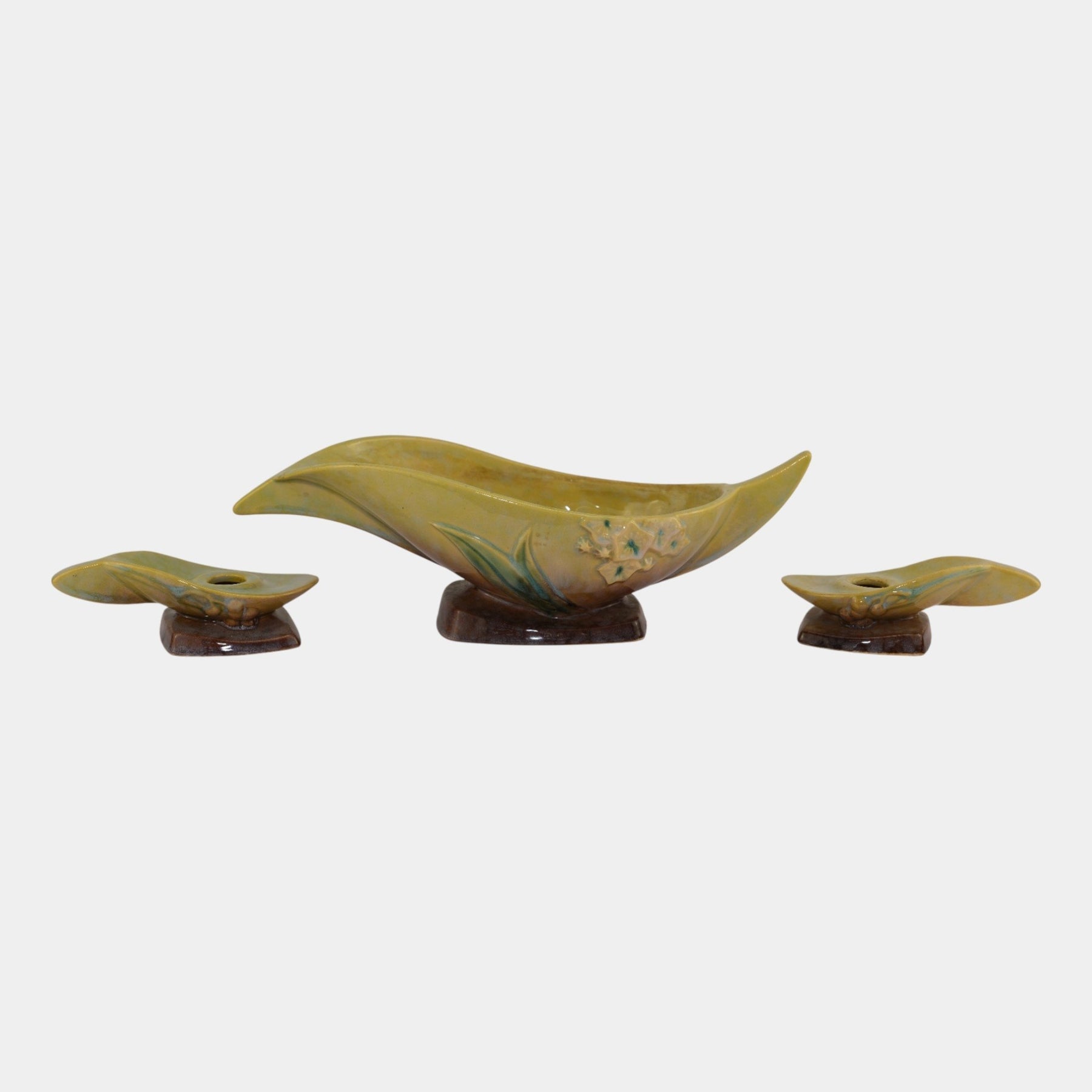 • Roseville Pottery Wincraft Art Deco Console Bowl 227-10 And Candle Holders 252