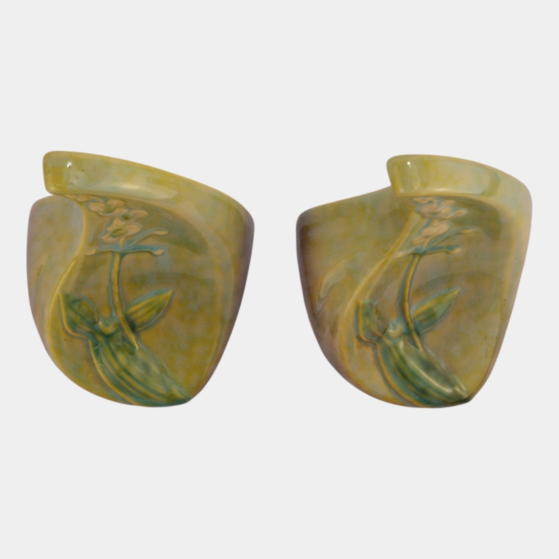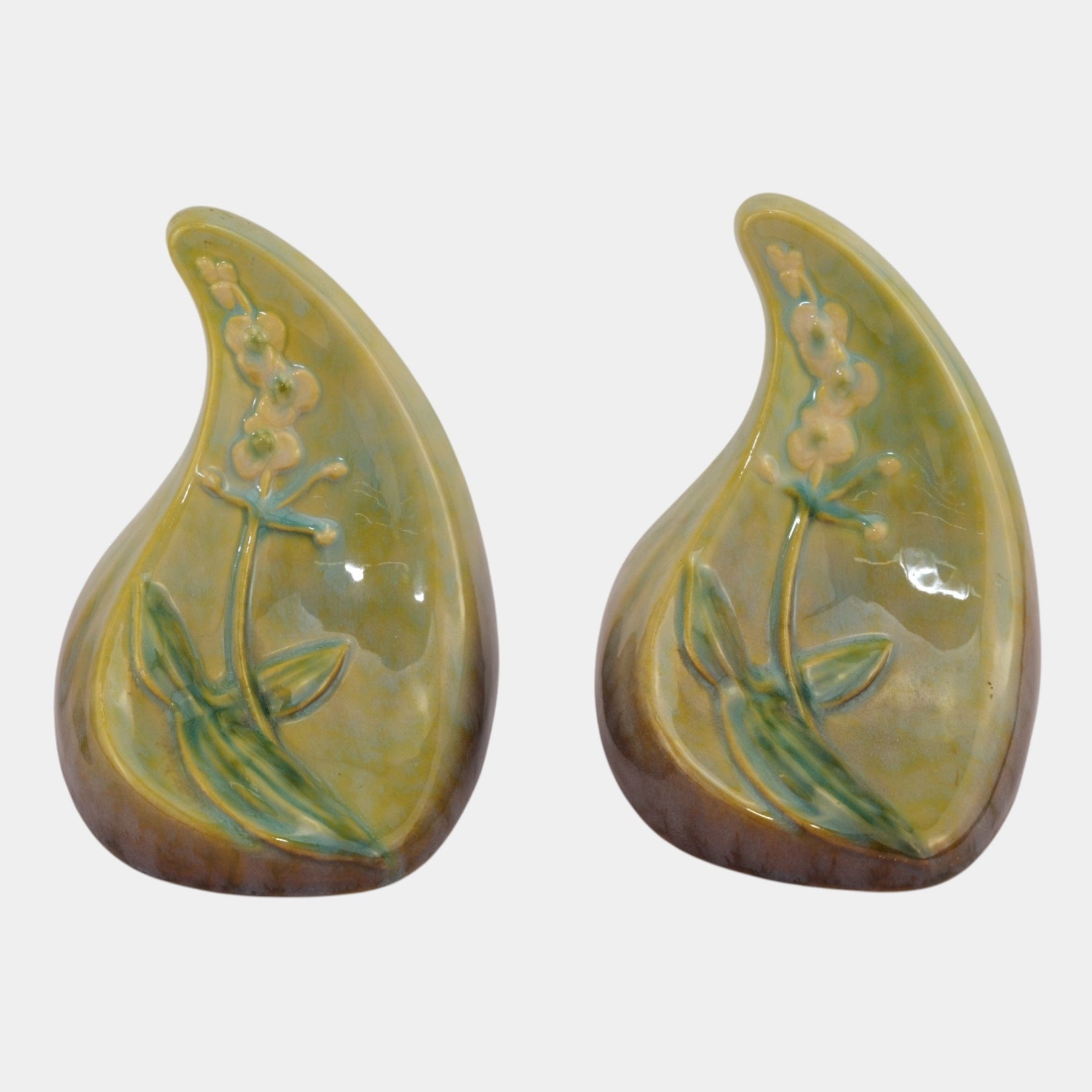 • Roseville Wincraft Green 1948 Mid Century Modern Pottery Ceramic Bookends 259
