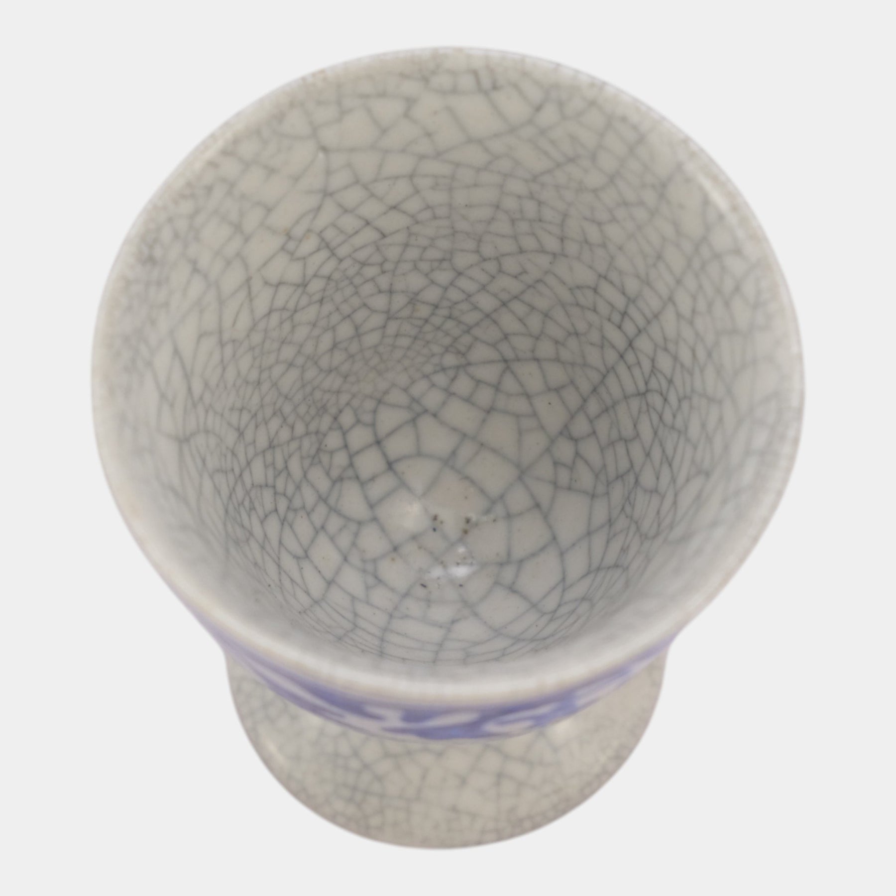 • Encircled by Dedham’s classic cobalt-blue rabbit band, this pedestal goblet presents a tapered cup and sturdy foot, its evenly crazed ivory glaze and balanced proportions reflecting early Arts & Crafts New England pottery.