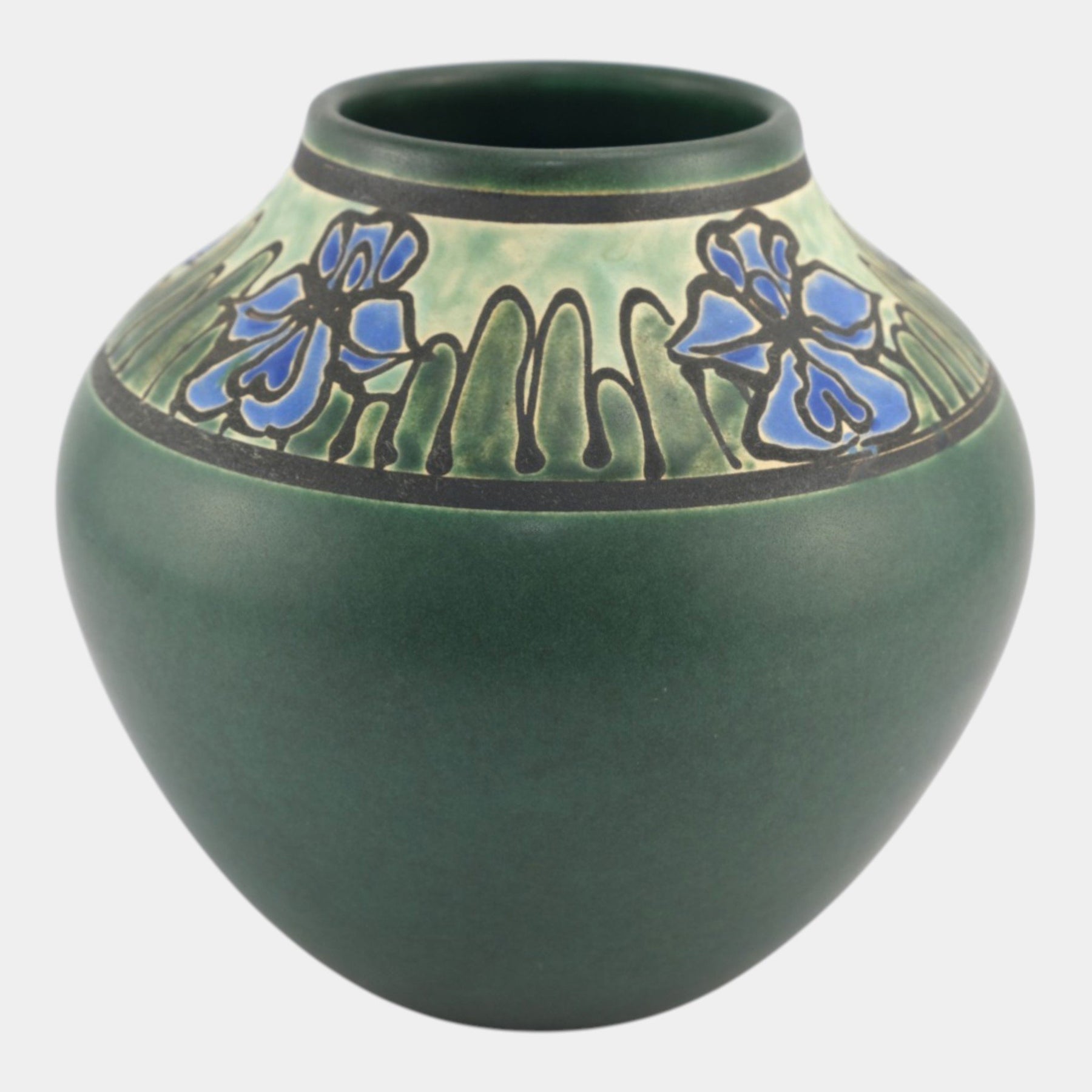 • Door Studio Saturday Evening Girl Pottery Hand Thrown Blue Iris Green Vase