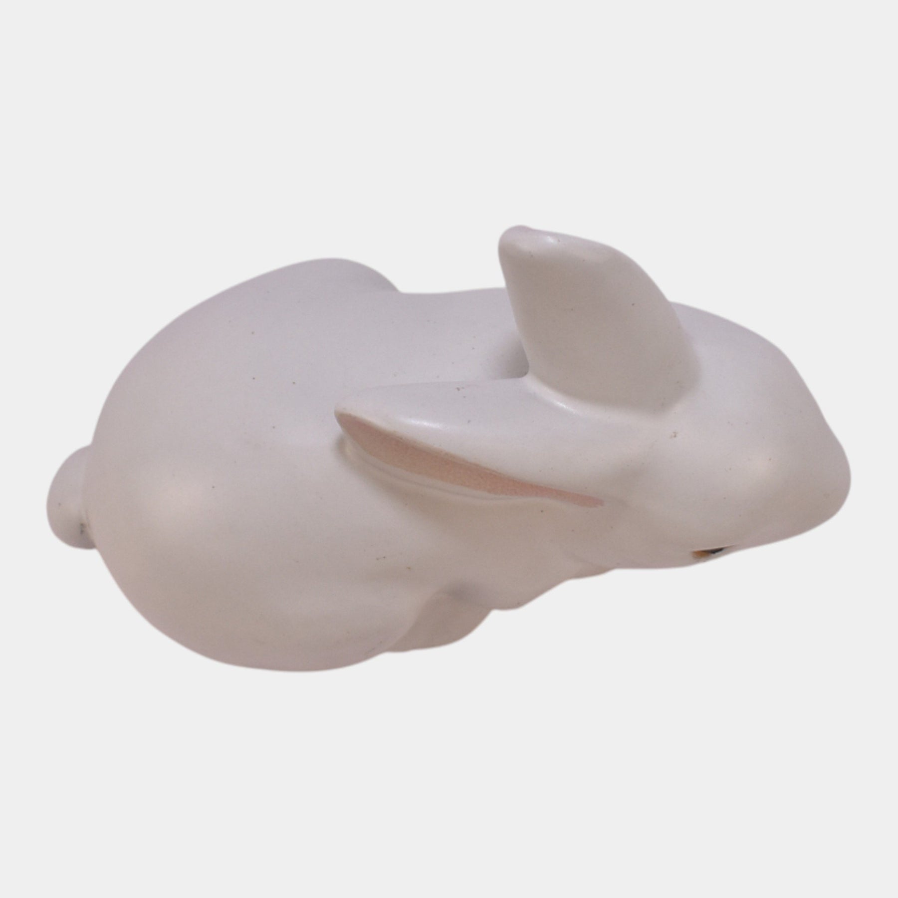 • Smoothly sculpted Pigeon Forge bunny figurine with soft white glaze, gentle pink ear shading, and a sweet, rounded form—exuding simple Appalachian charm and handcrafted warmth.