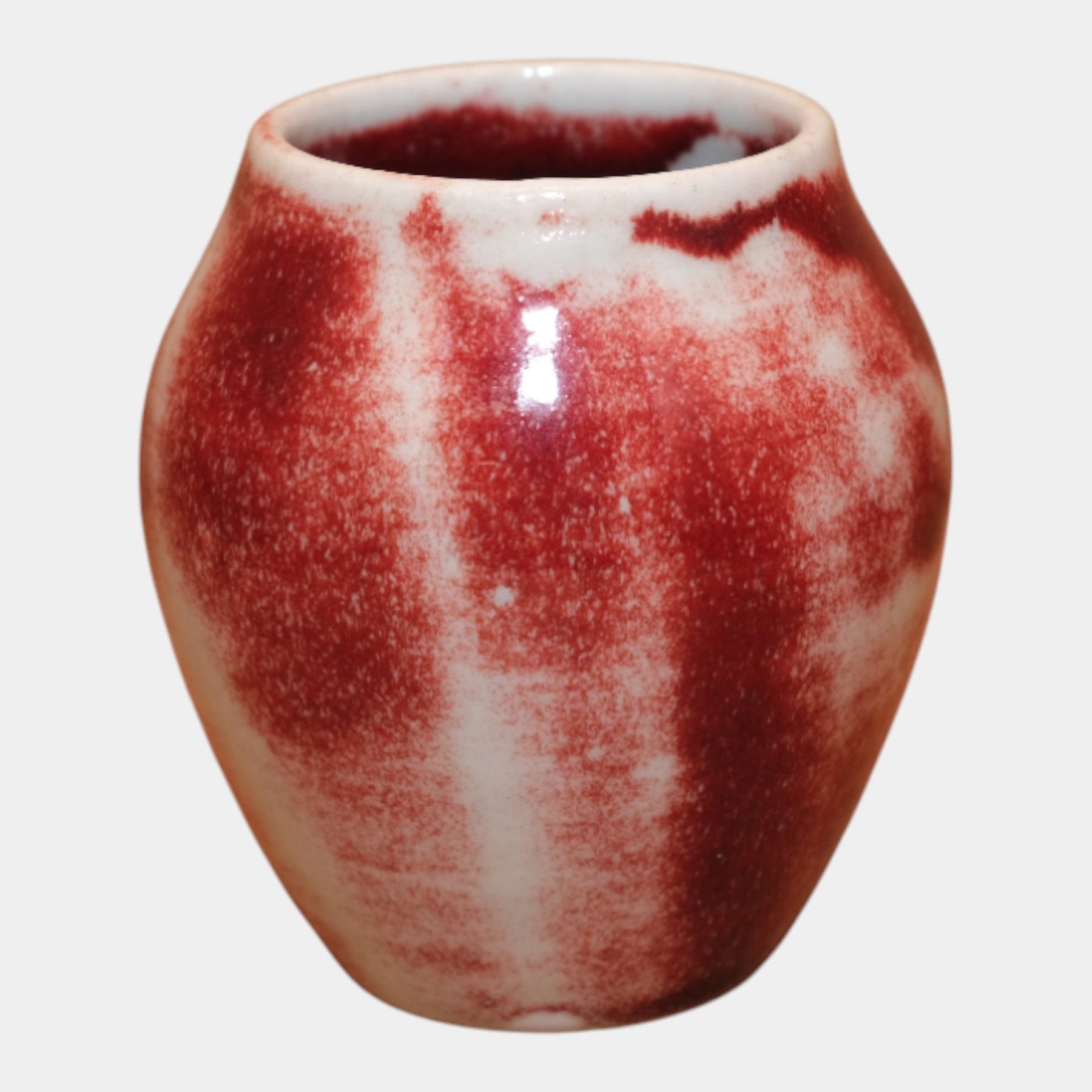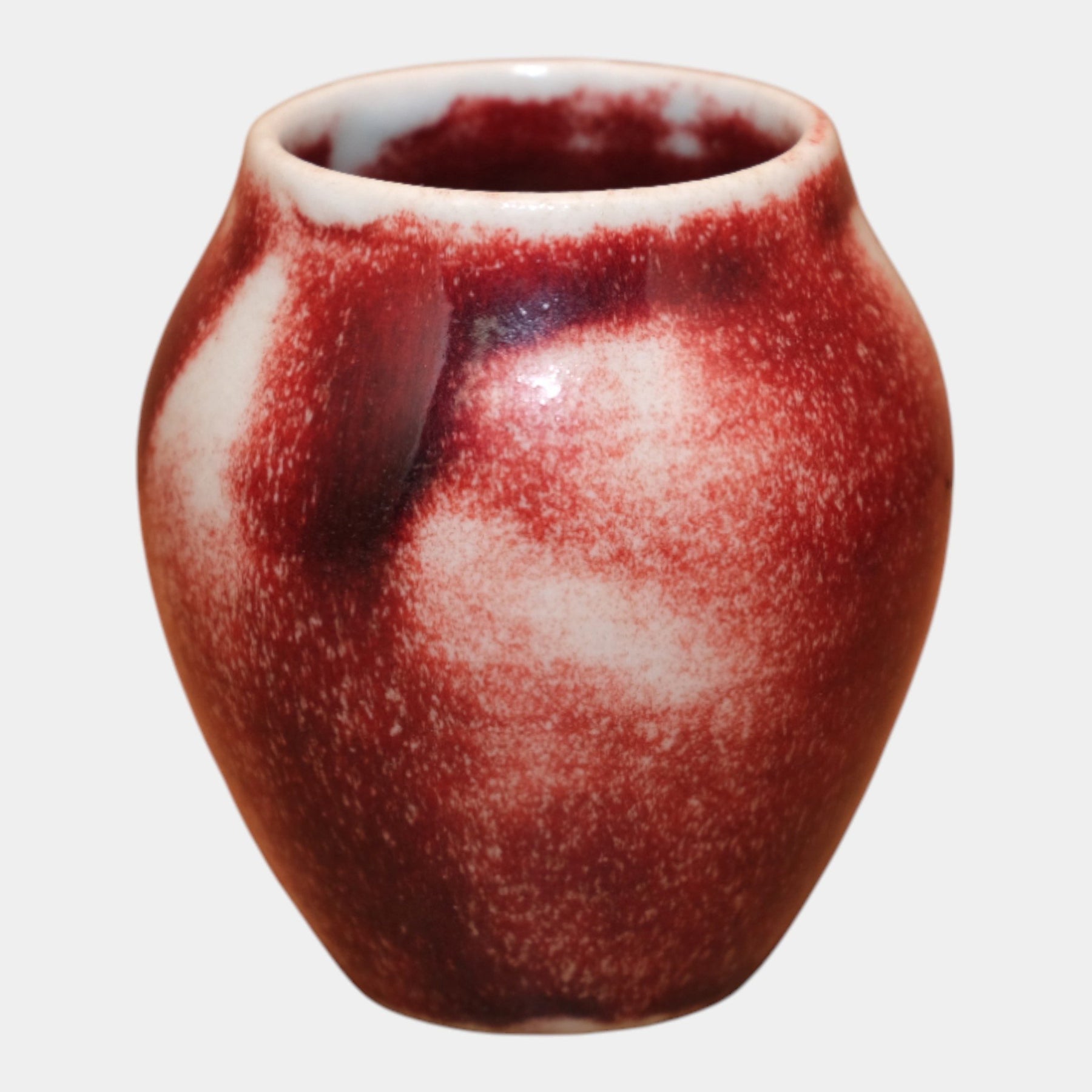 • Rich Rookwood Pottery vase featuring a deep oxblood glaze with soft tonal transitions. Classic rounded form with excellent surface character and sheen. A striking example of Rookwood’s masterful glaze work.