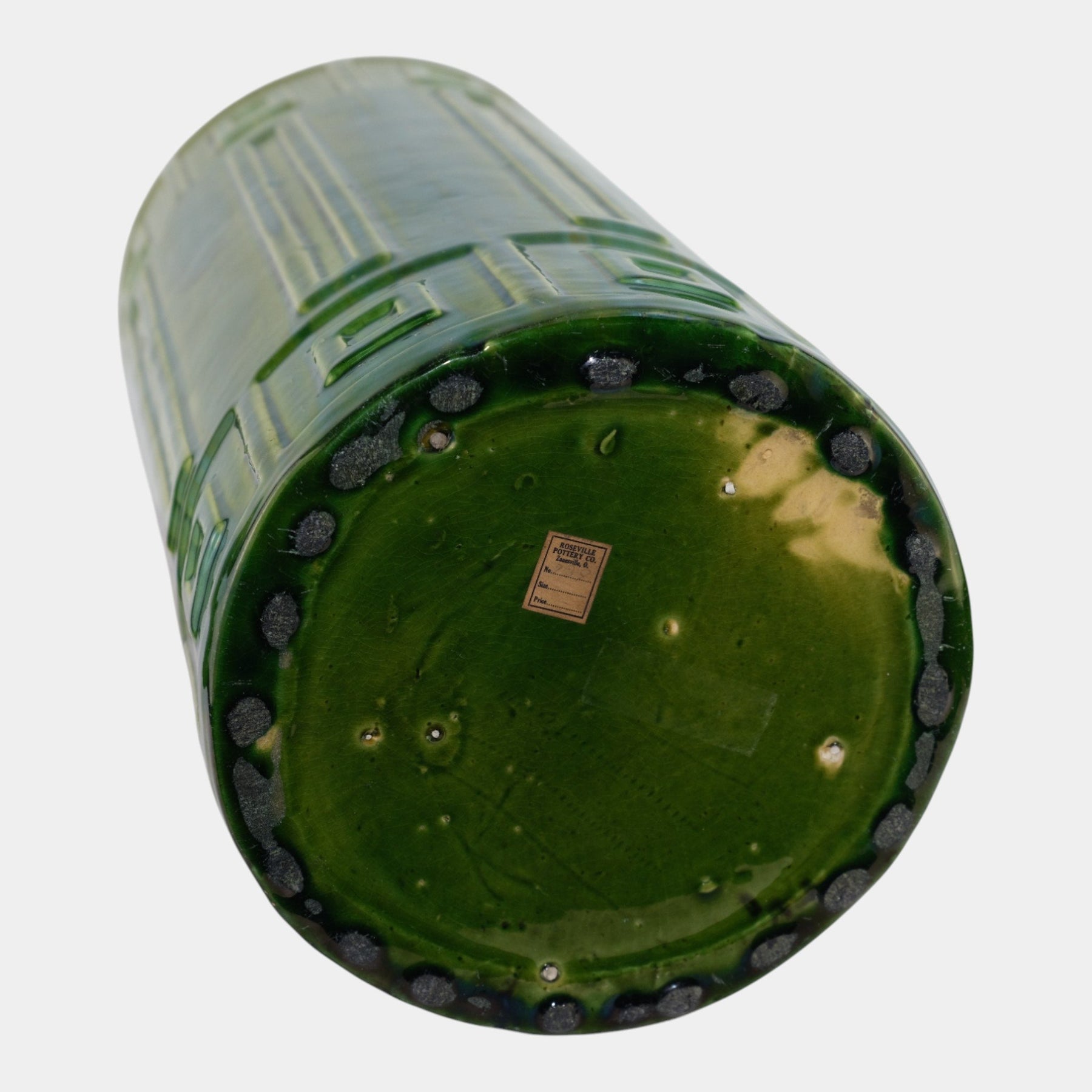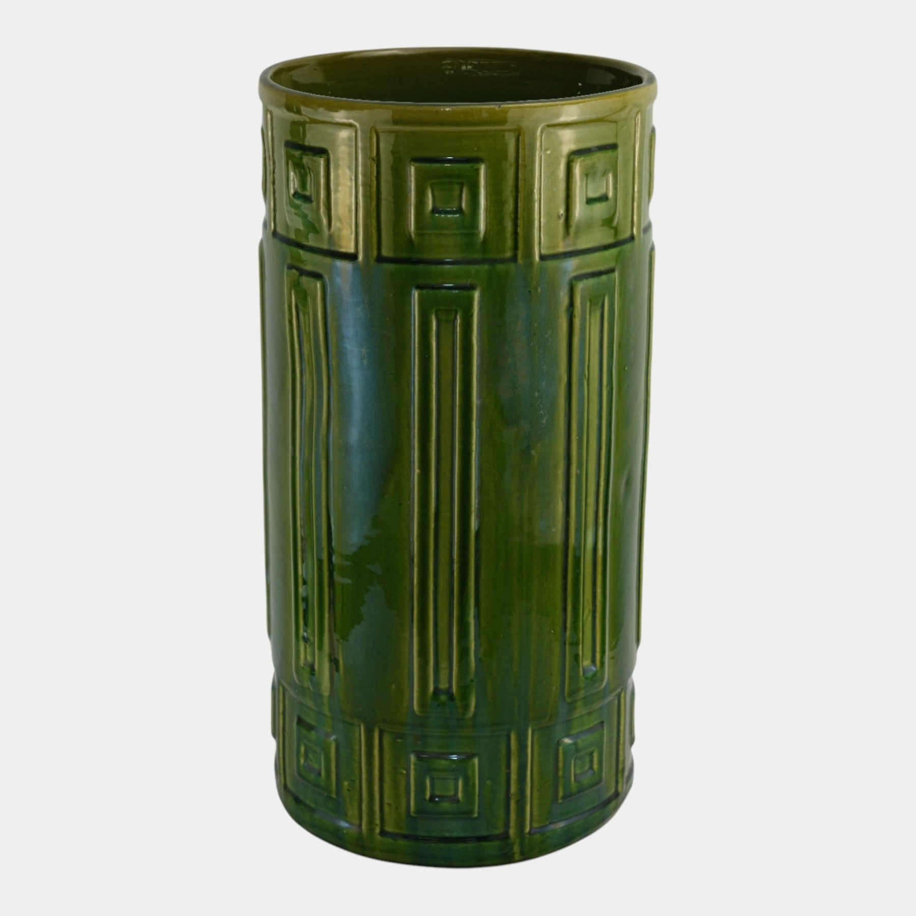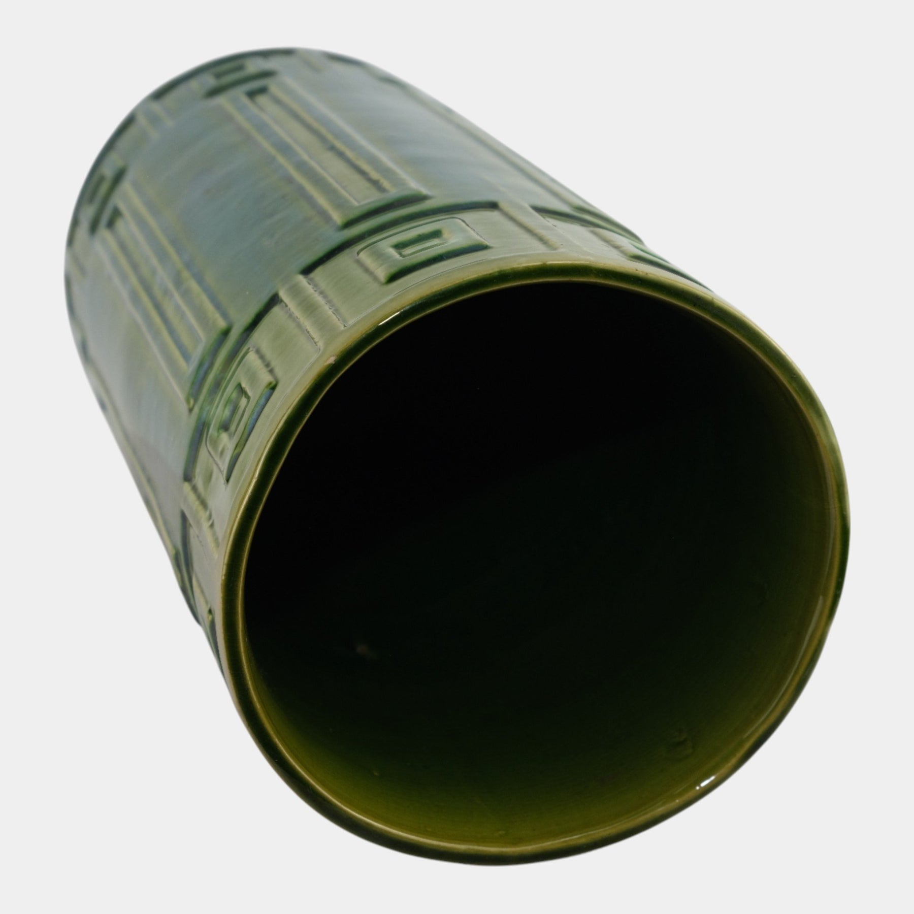 • Roseville Blended Majolica Vintage Green Geometric Design Umbrella Stand 739