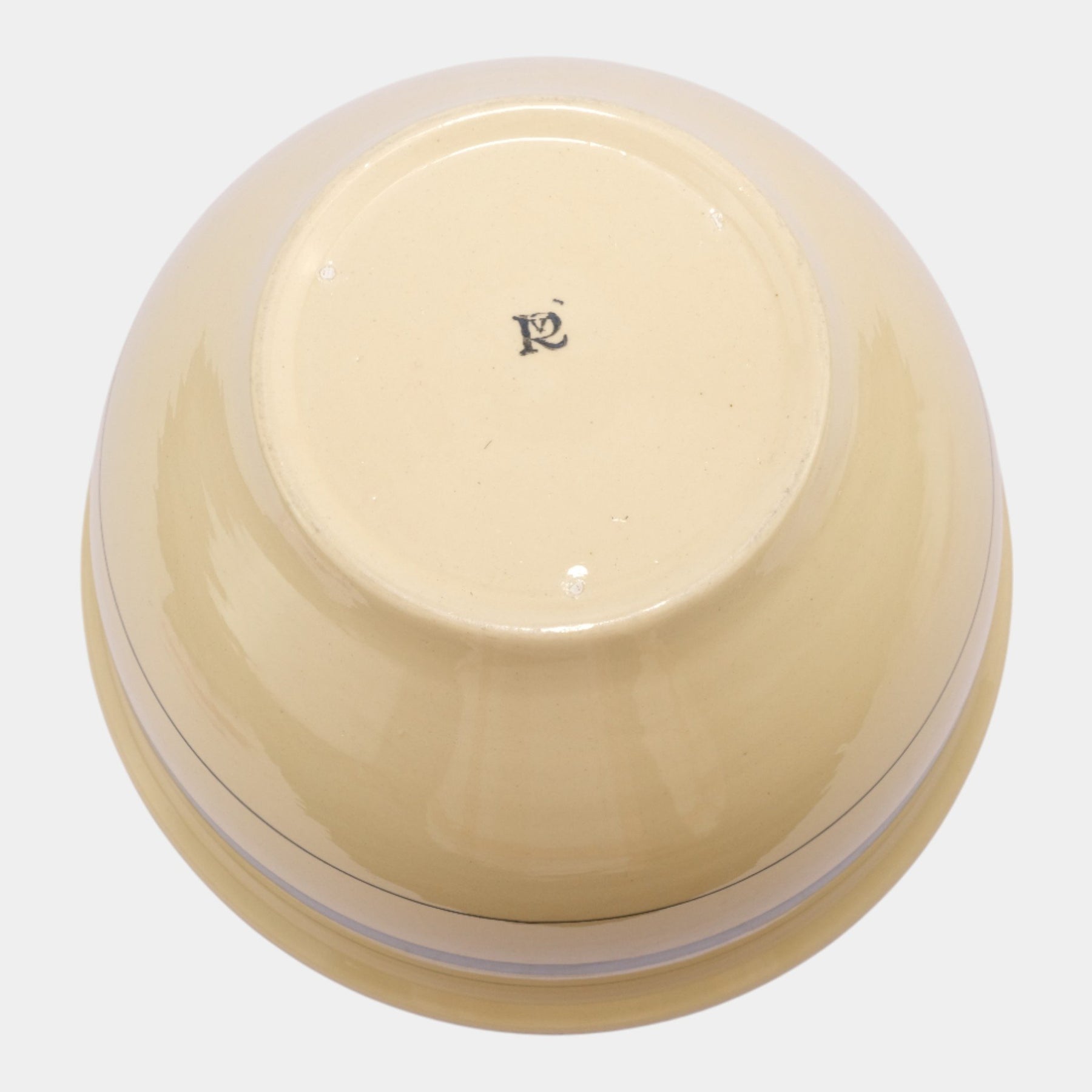 • This bowl showcases the clean, functional styling that defined Roseville’s Utility Ware—crafted for everyday use but with an undeniable Arts & Crafts sensibility. The rounded body, smooth interior, and crisp banding give it both display appeal and collectible value. These larger bowls are increasingly hard to find in clean condition today.