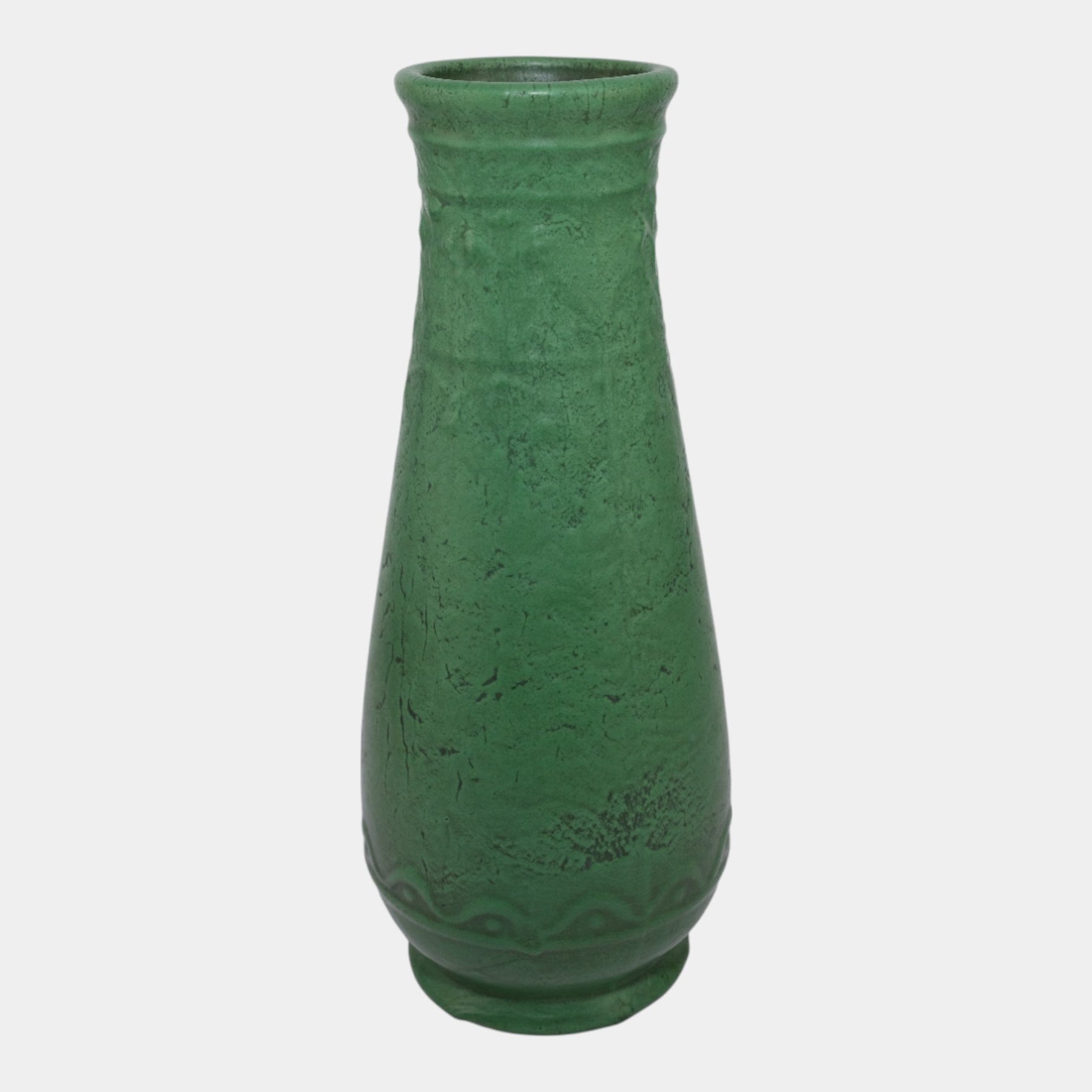 • Roseville Egypto 1905 Arts and Crafts Pottery Matte Green Ceramic Vase E47-12