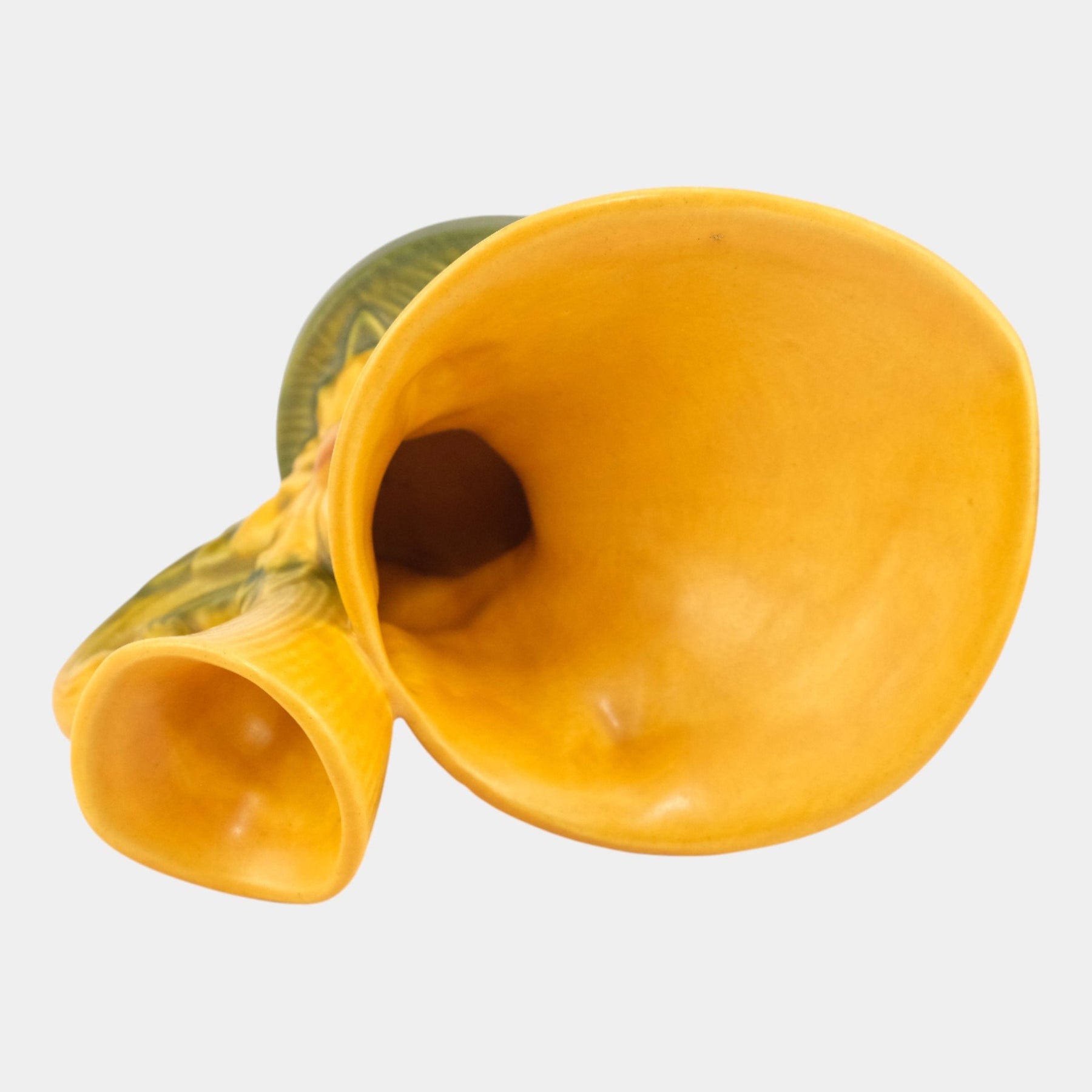 • Roseville Peony Yellow 1942 Vintage Art Pottery Double Cornucopia Vase 172