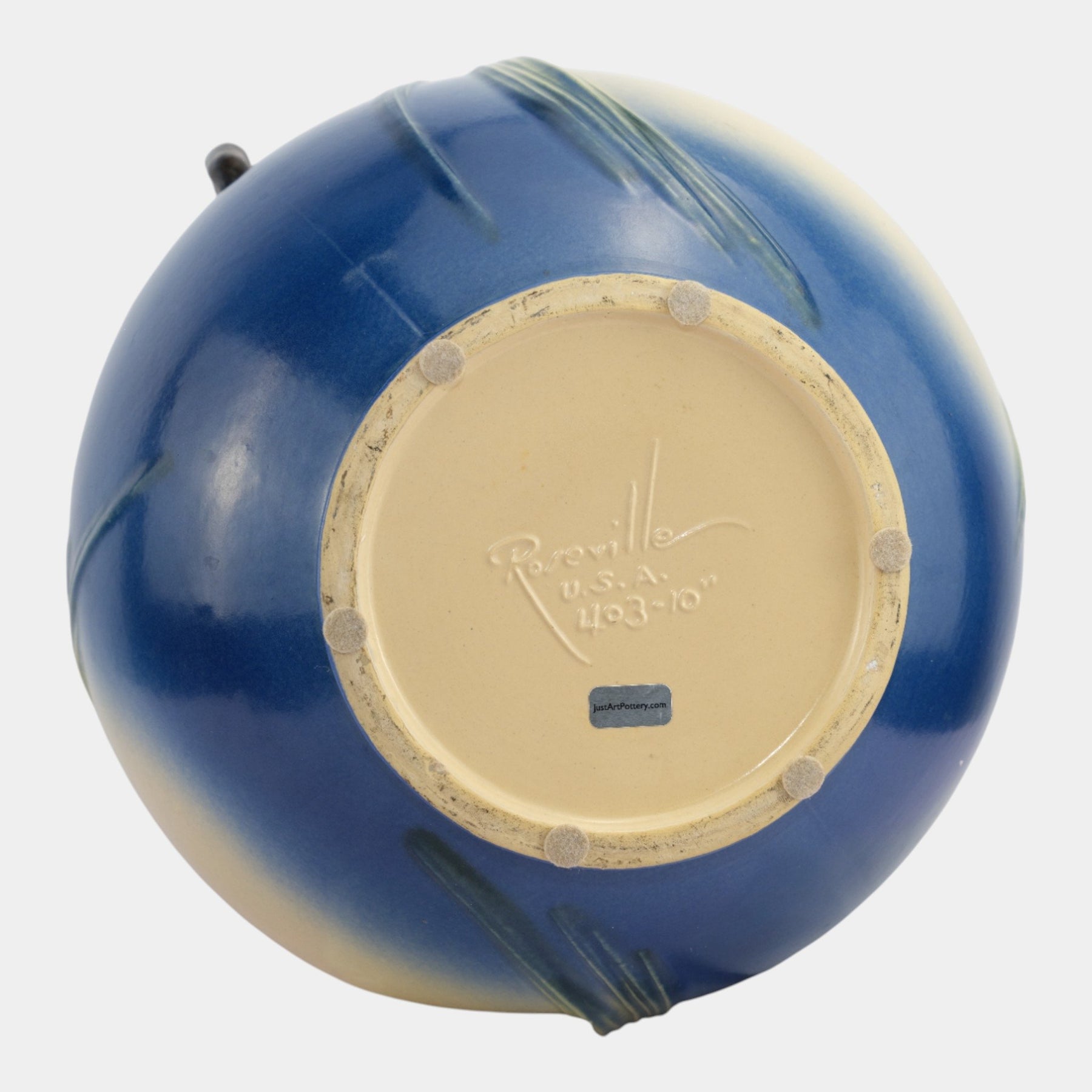 Sign up below to receive an email when the price of Roseville Pine Cone Blue 1953 Vintage Art Pottery Handled Jardiniere 403-10 is reduced.
