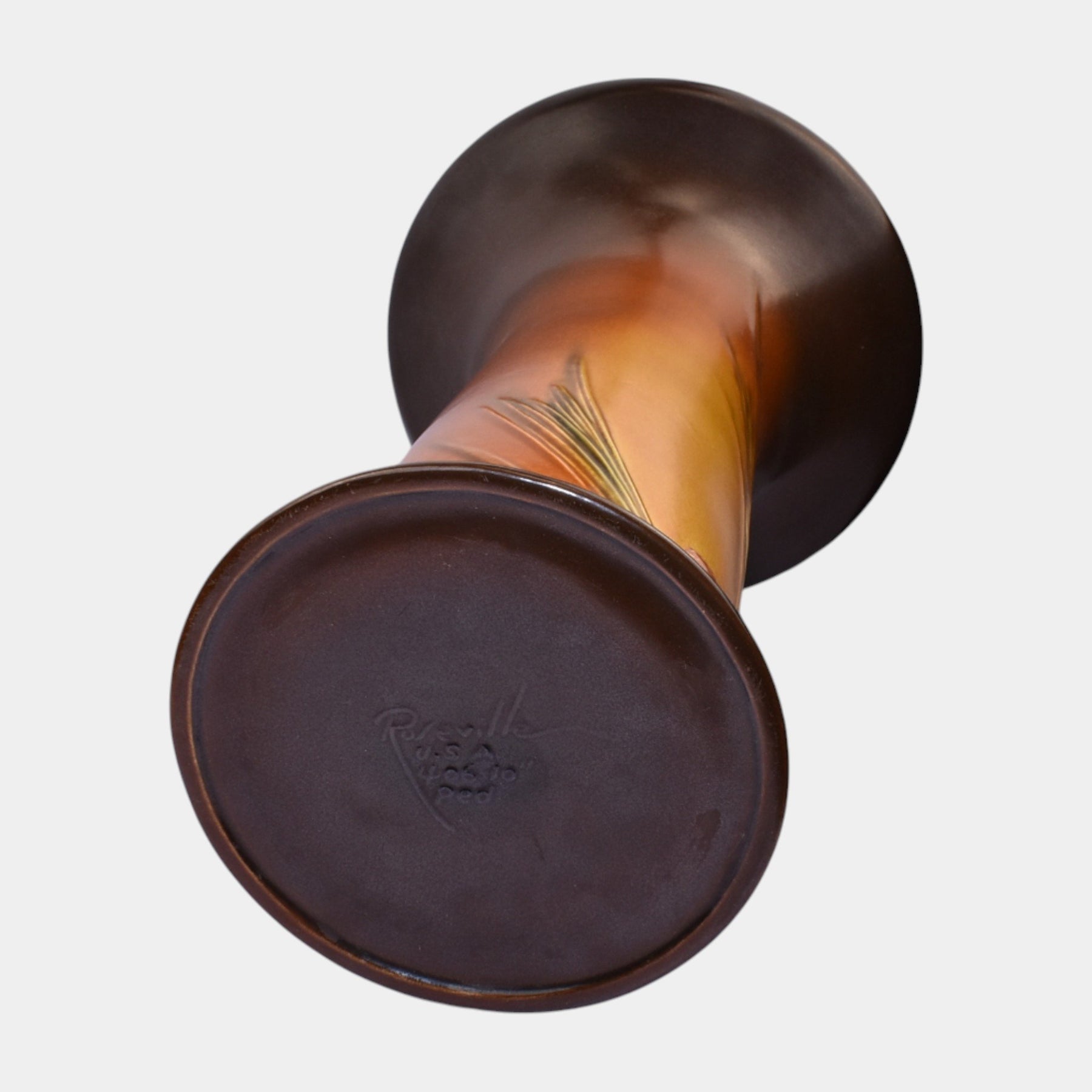• Bottom of jardiniere marked with Roseville, USA and shape number. Pedestal marked with Roseville, USA, shape number, Ped and Pine Cone.