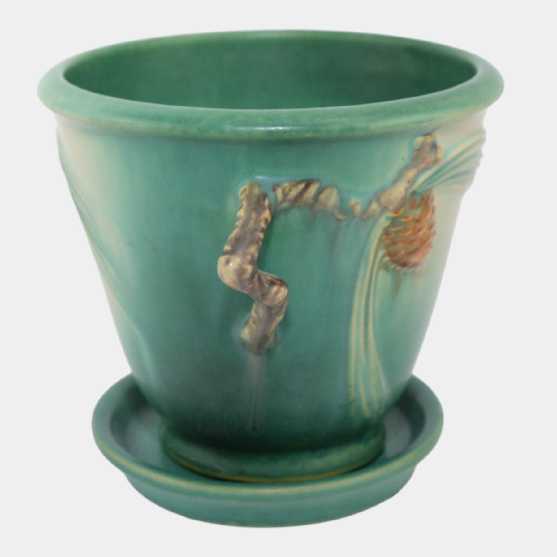 • Sought after Pine Cone green flower pot and saucer with good mold and glaze.
