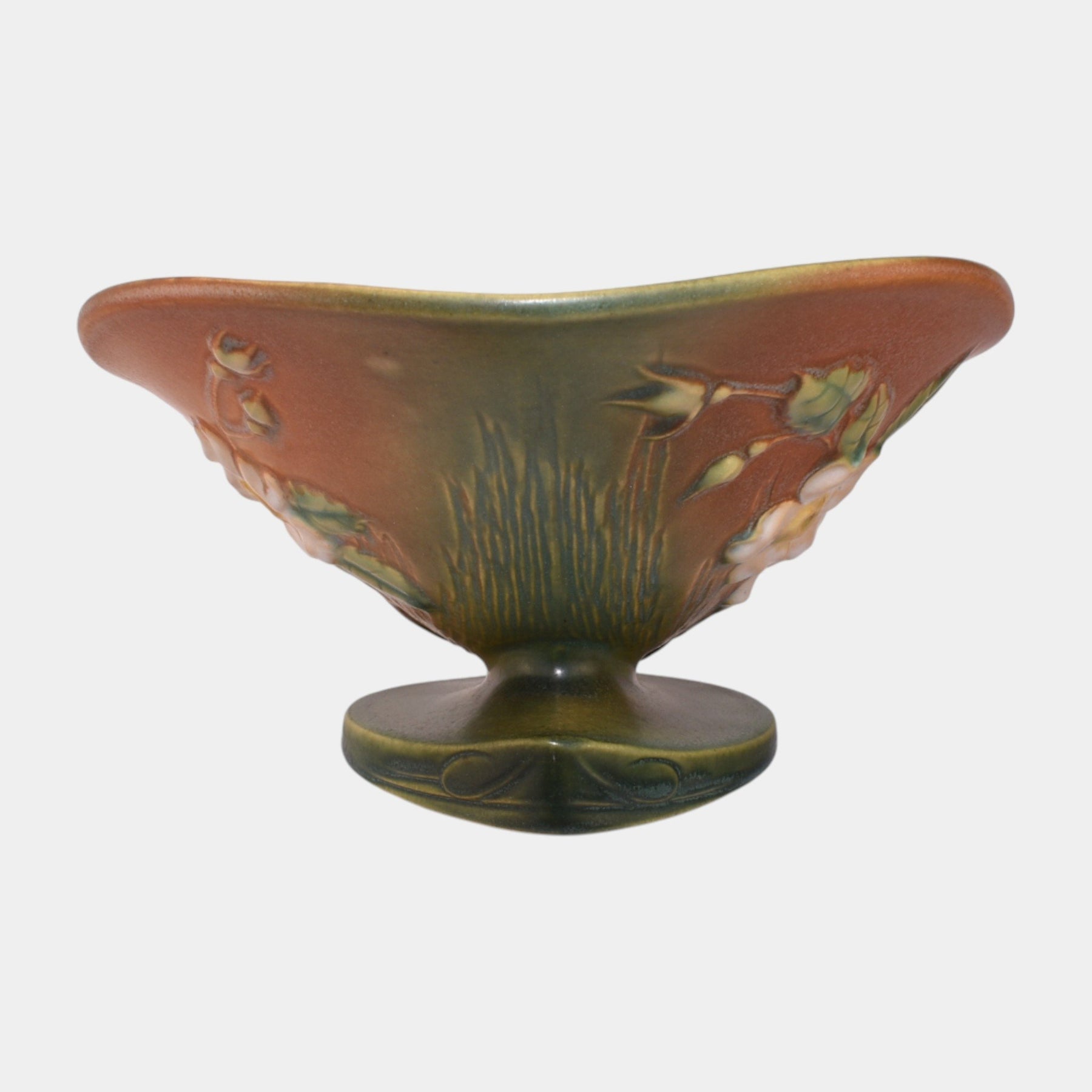 • Roseville Pottery was established in Roseville, Ohio, in 1890. Over the years, the company expanded its production to include a wide range of decorative wares, and by the early 20th century, Roseville had shifted its focus toward producing finely crafted art pottery in response to the growing Arts and Crafts movement. Many popular patterns and styles helped establish Roseville as a leading American art pottery maker, known for its high-quality craftsmanship and distinctive, nature-inspired designs.