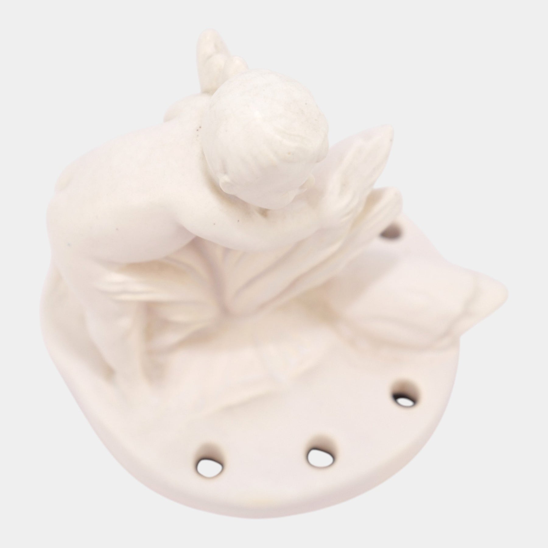 • Weller Hobart Vintage Art Pottery Ceramic White Flower Frog Child Swan Figurine