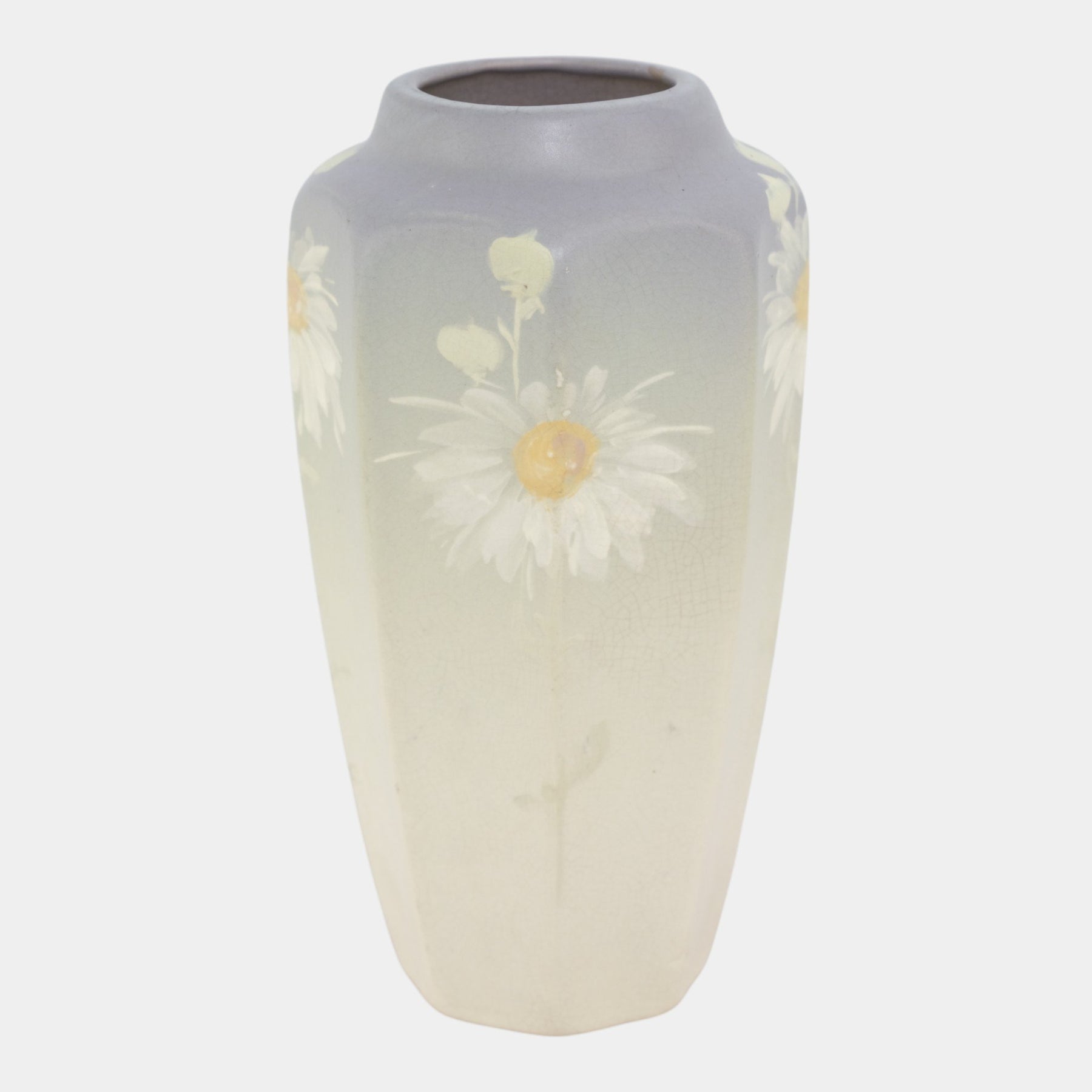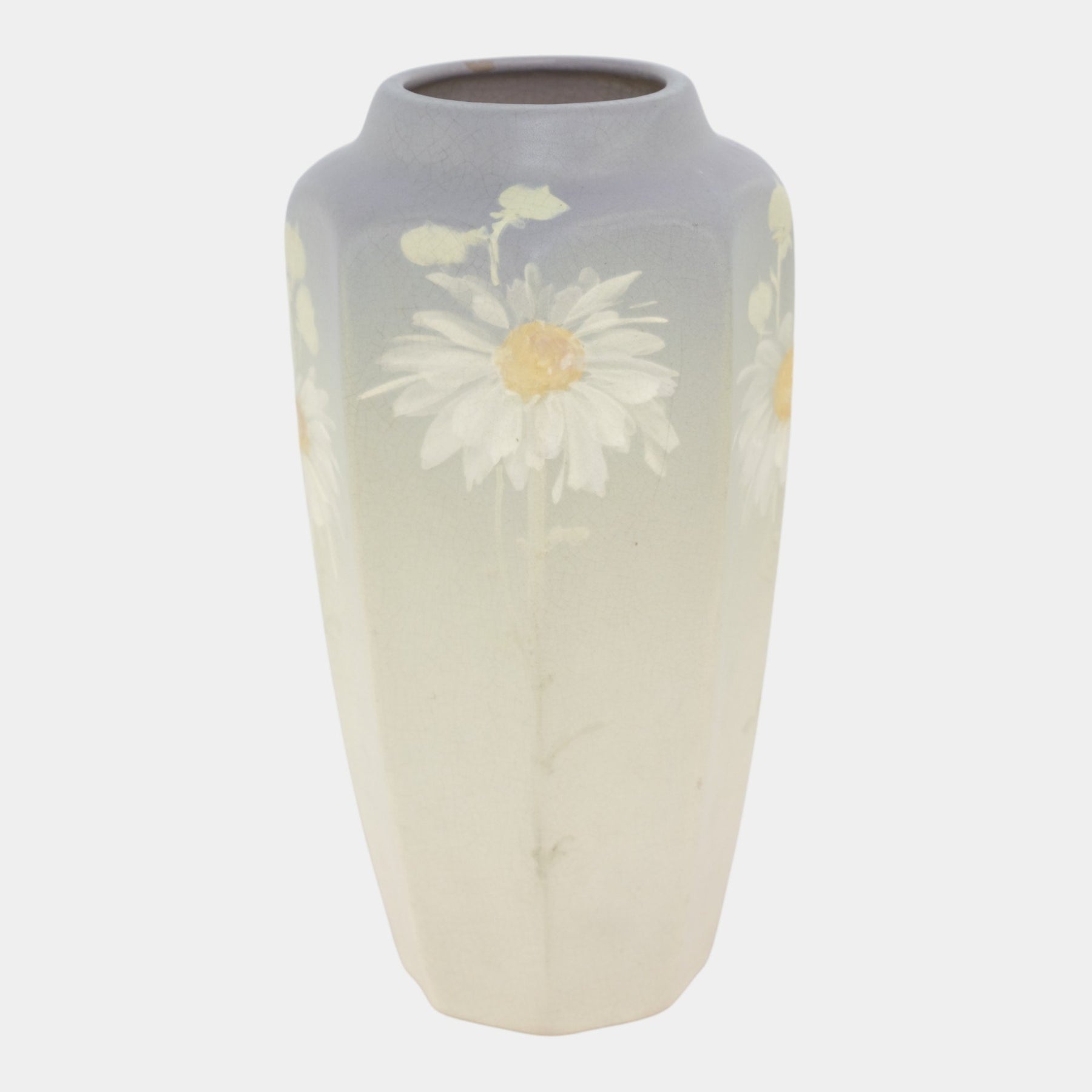 • Rising in a softly faceted form, this Weller Hudson Light vase features delicately hand-painted daisies against a creamy matte ground, its restrained Arts & Crafts palette and graceful proportions emphasizing naturalistic elegance.