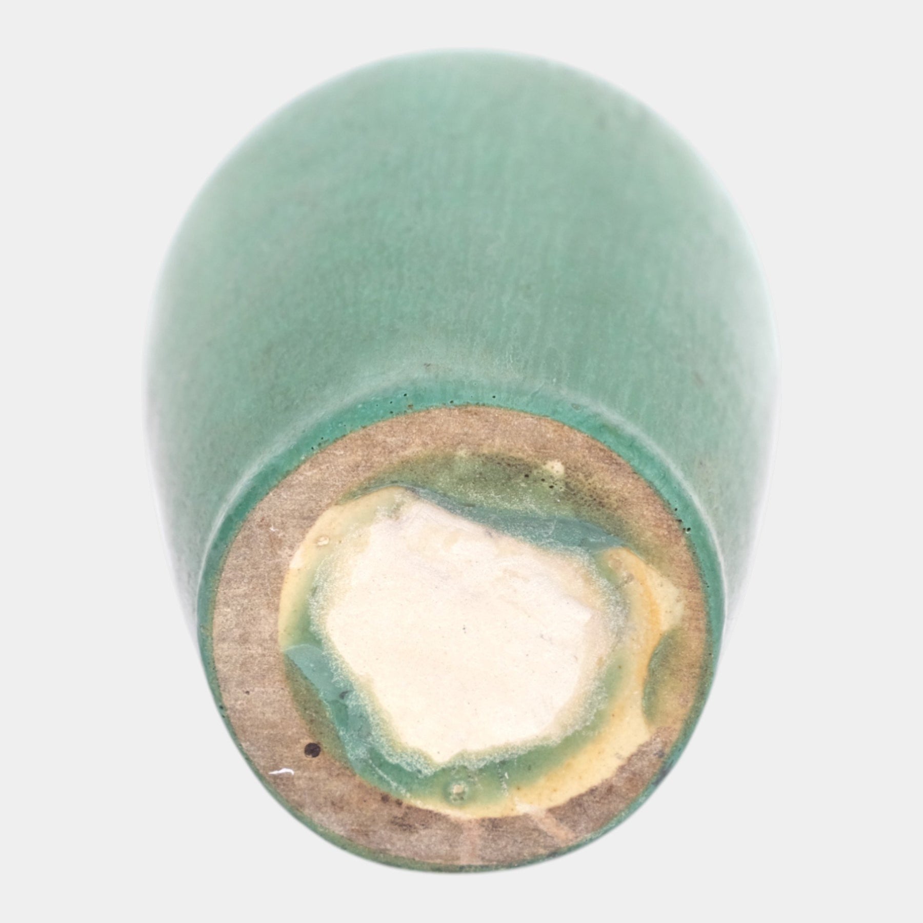 • Good arts and crafts vase with great form and design, covered in a nice organic matte green.