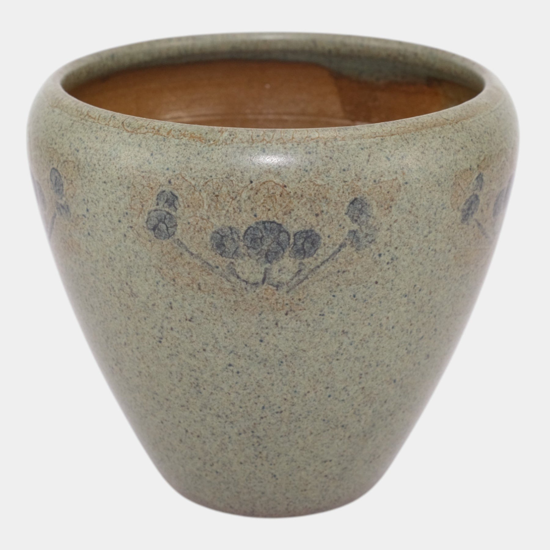 • Marblehead Pottery Decorated Speckled Matte Green Blue Painted Design Vase Baggs