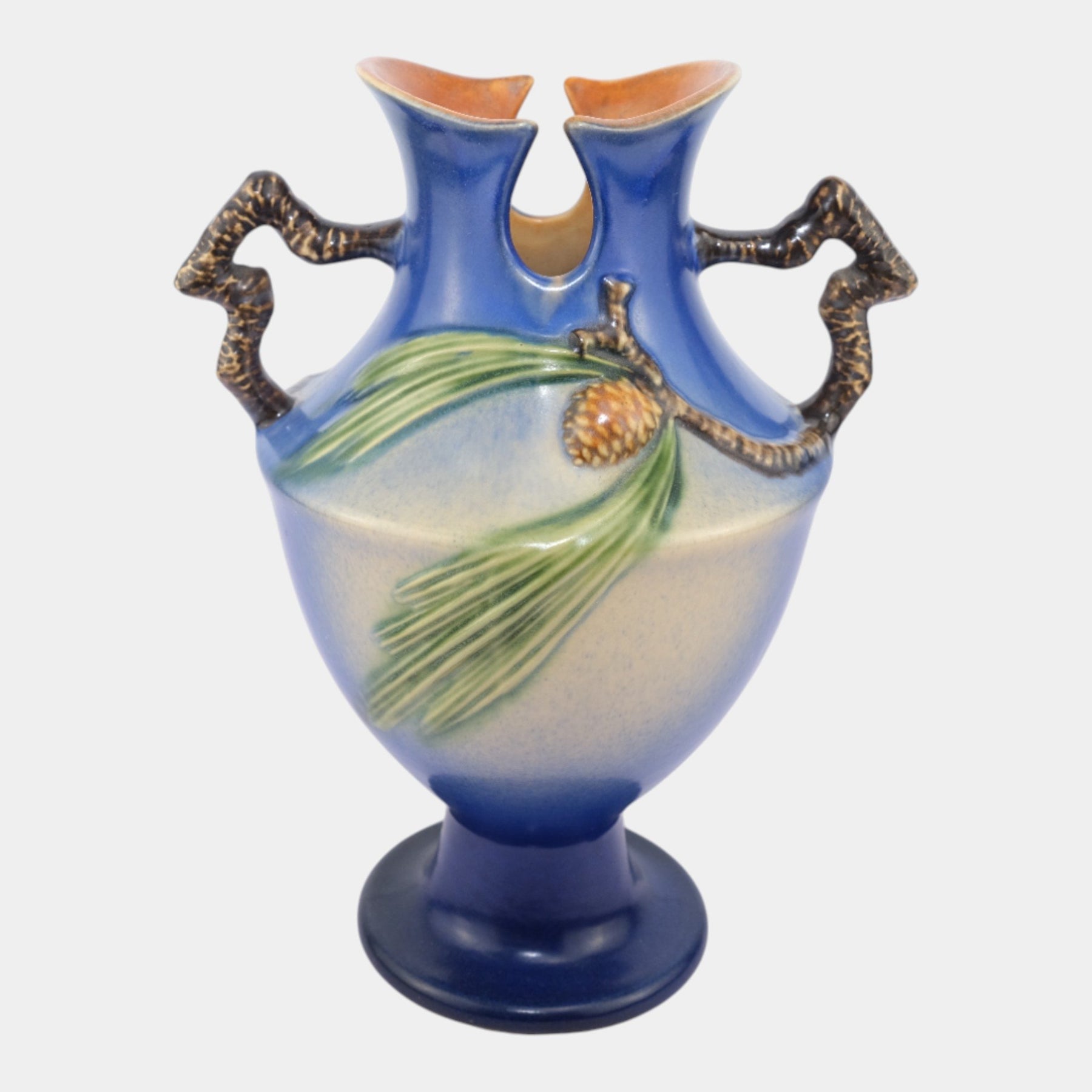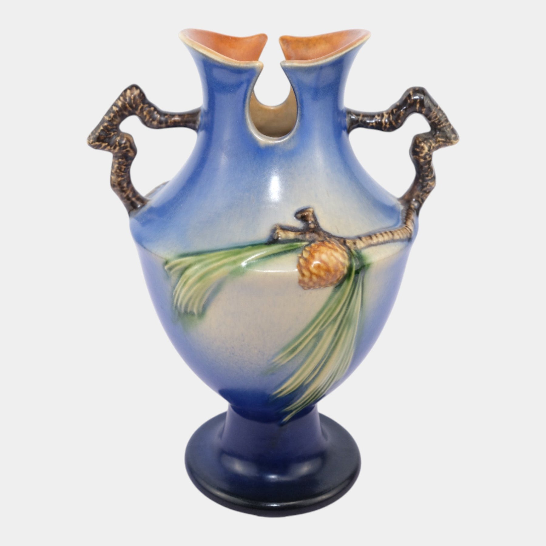 • Roseville Pine Cone Blue 1940 Vintage Art Pottery Ceramic Vase 848-10