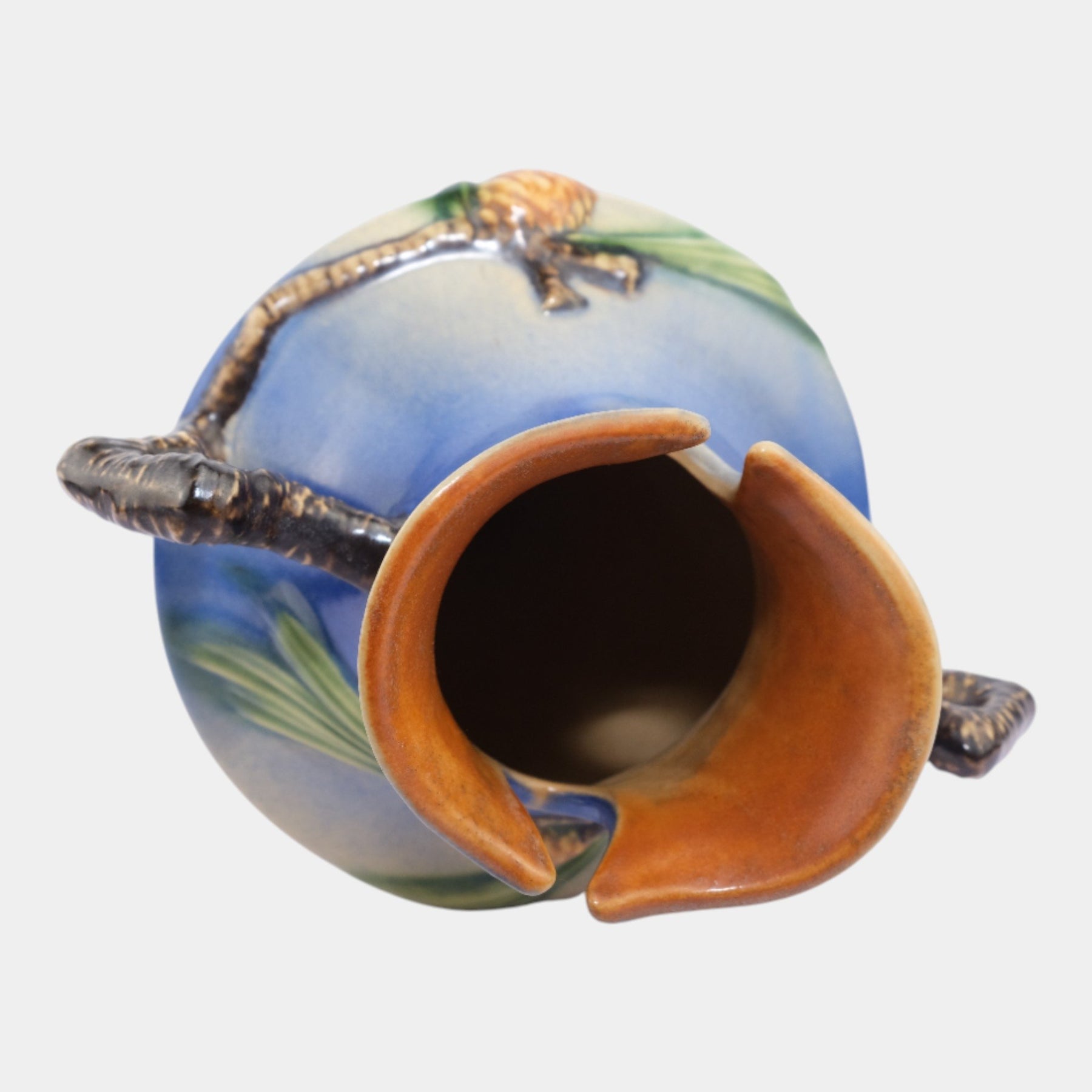 • Roseville Pottery was established in Roseville, Ohio, in 1890. Over the years, the company expanded its production to include a wide range of decorative wares, and by the early 20th century, Roseville had shifted its focus toward producing finely crafted art pottery in response to the growing Arts and Crafts movement. Many popular patterns and styles helped establish Roseville as a leading American art pottery maker, known for its high-quality craftsmanship and distinctive, nature-inspired designs.