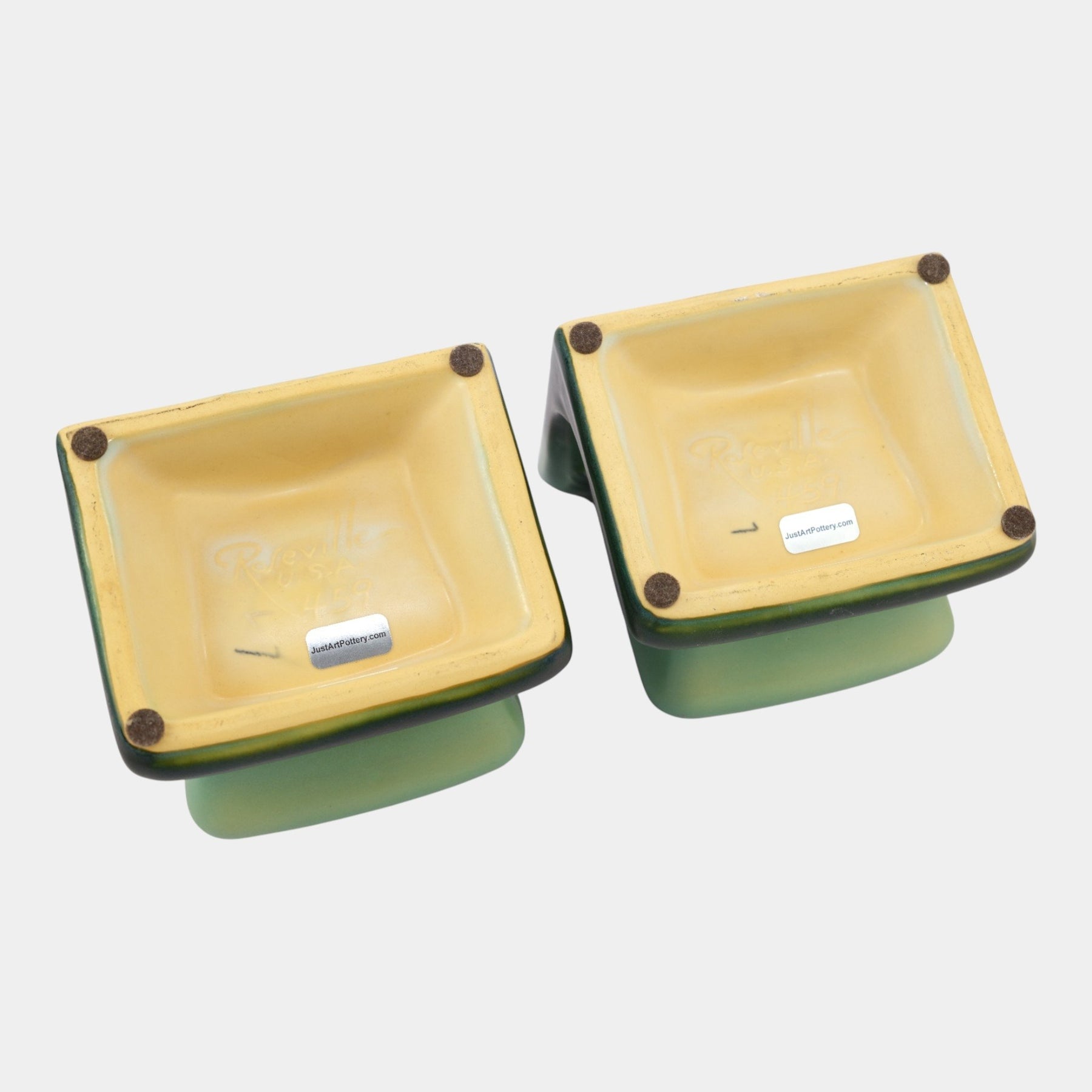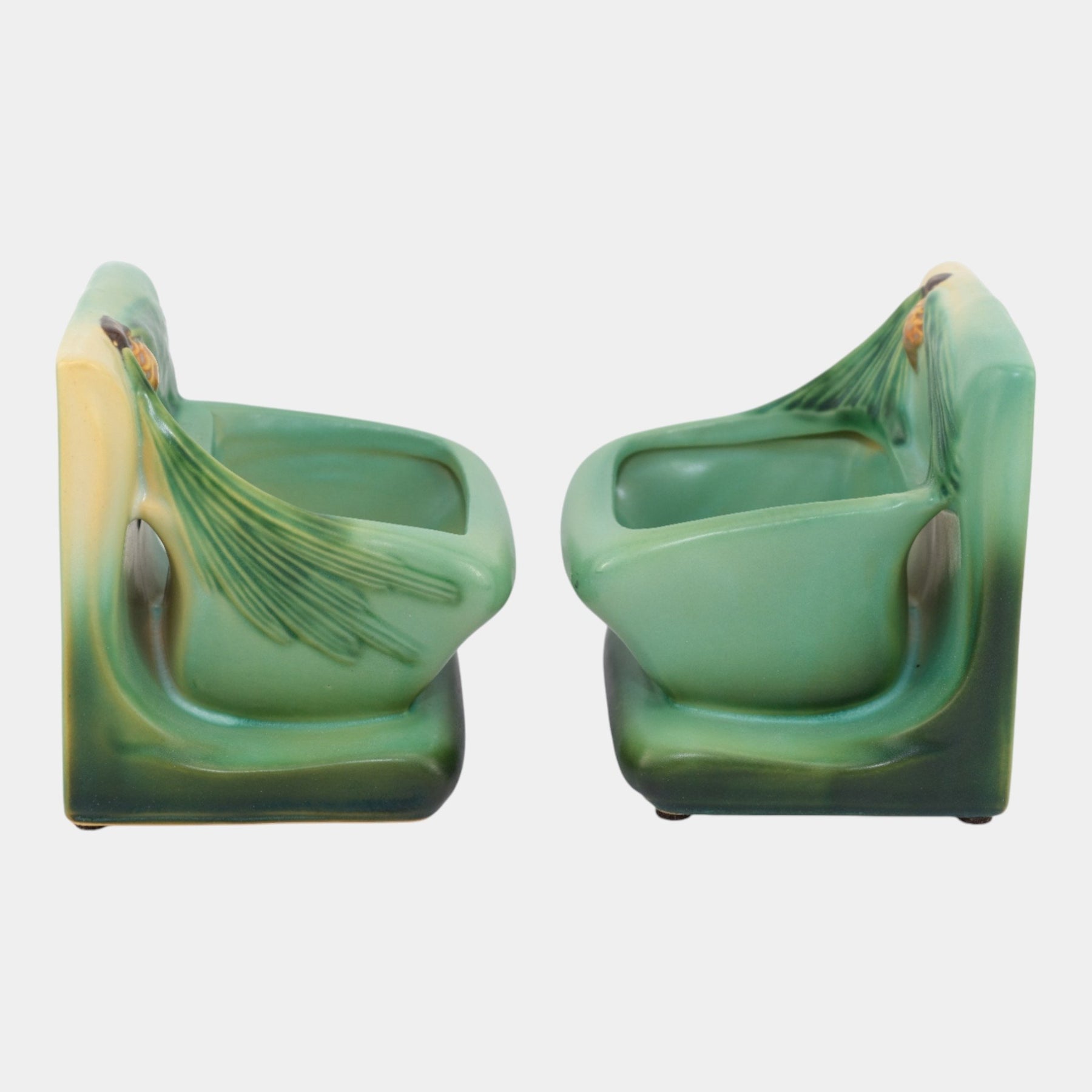 • Roseville Pine Cone Green 1953 Vintage Art Pottery Ceramic Planter Bookends 459